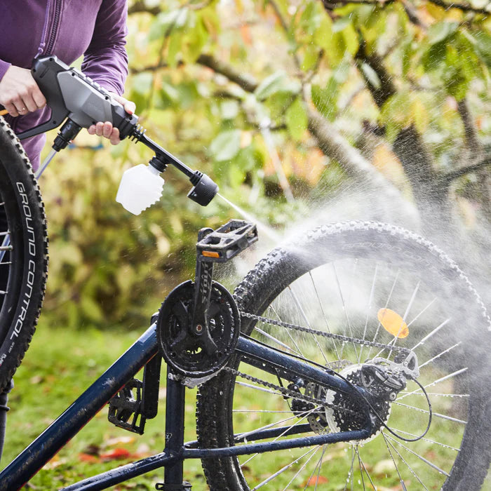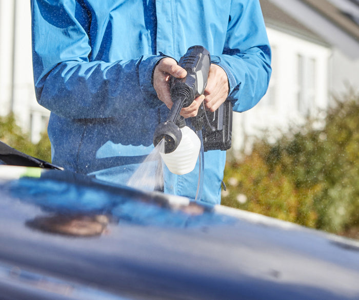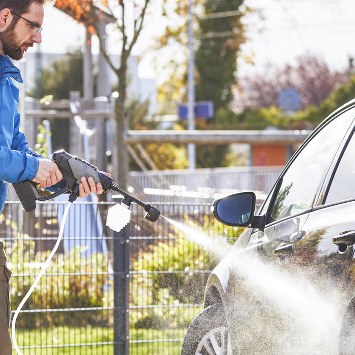 洗車、ベランダ掃除、外壁のメンテナンスなど、家庭からアウトドアまで幅広く活躍するコードレス高圧洗浄機です。