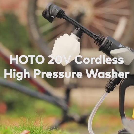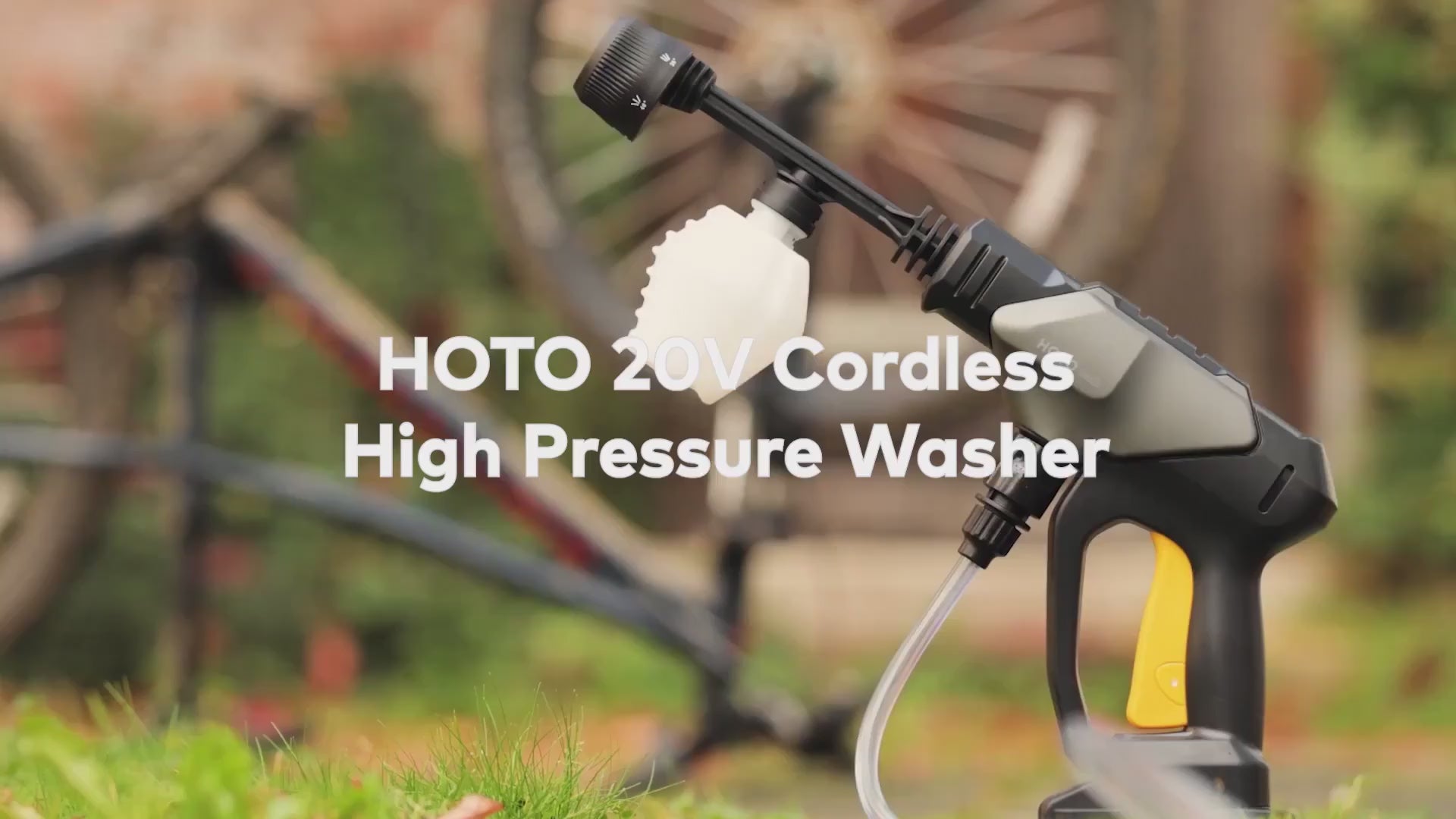 最大2.4MPaの強力な水圧と180L/hの大流量を誇る、HOTOの「20V 高圧洗浄機 Plus」。