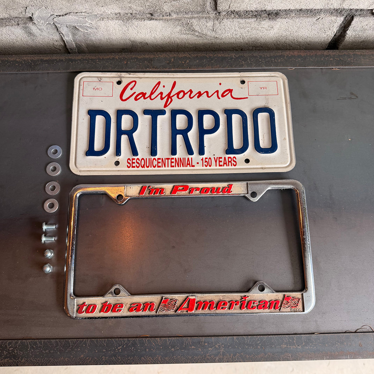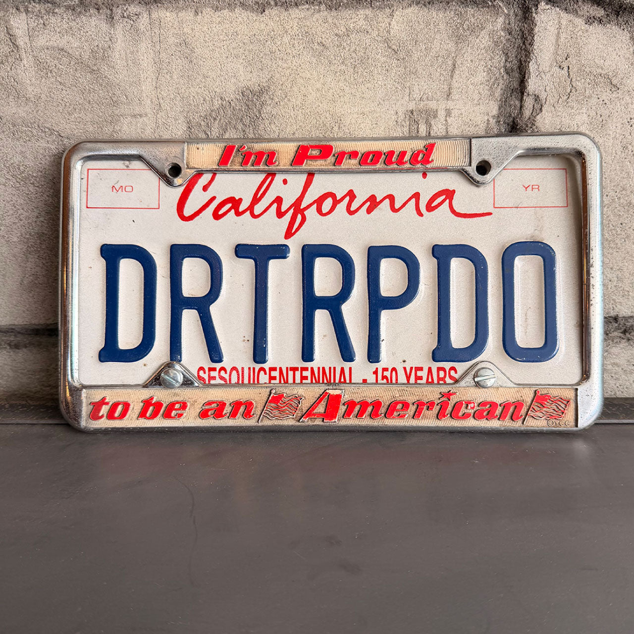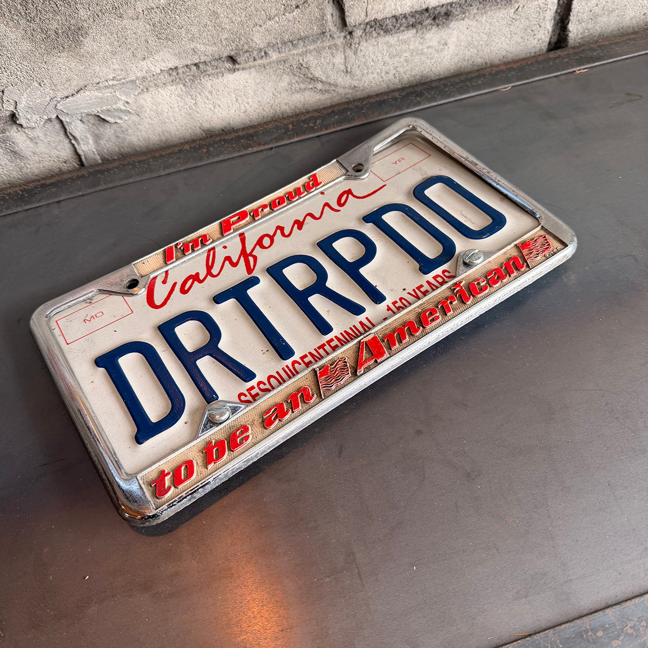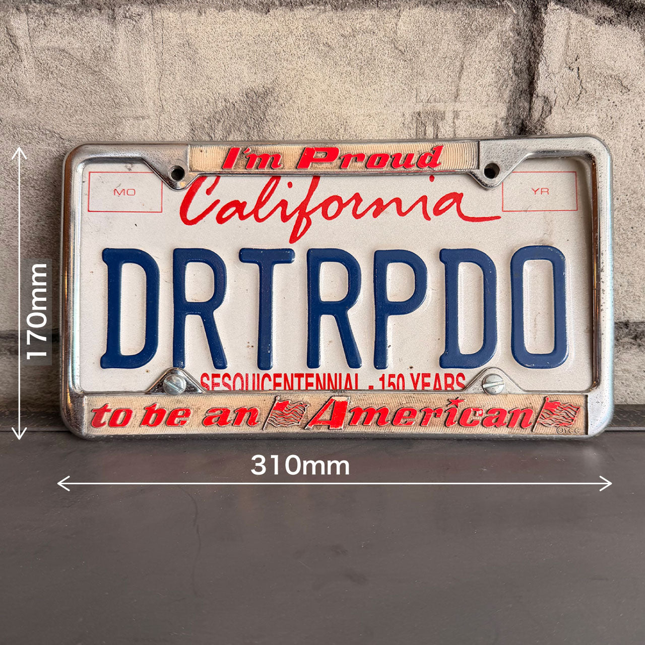 カリフォルニア州立150周年を記念して製作されたナンバープレート。アメリカのナンバープレート用汎用フレームが付属しているため、ディスプレイの幅が広がります。