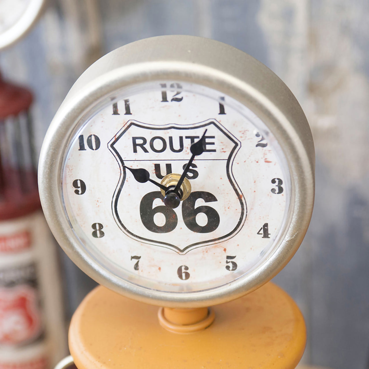 ・ガスポンプ型のテーブルクロックは、レトロなデザインと実用性を兼ね備えた逸品。