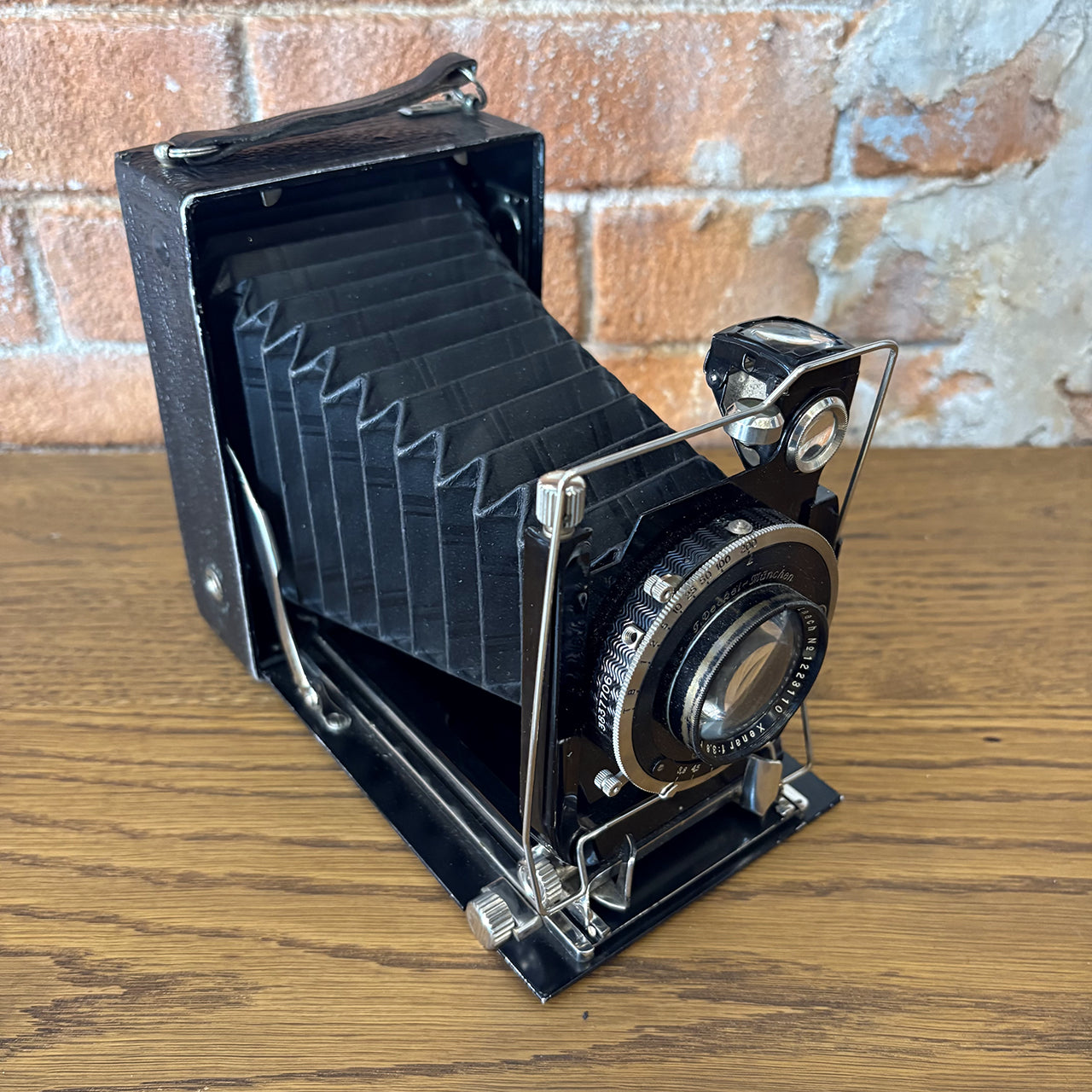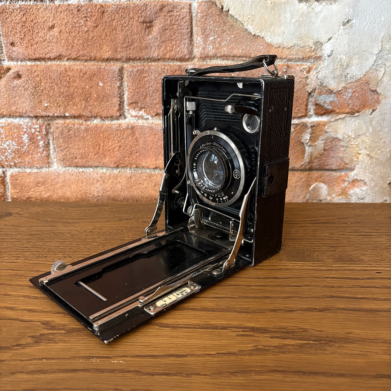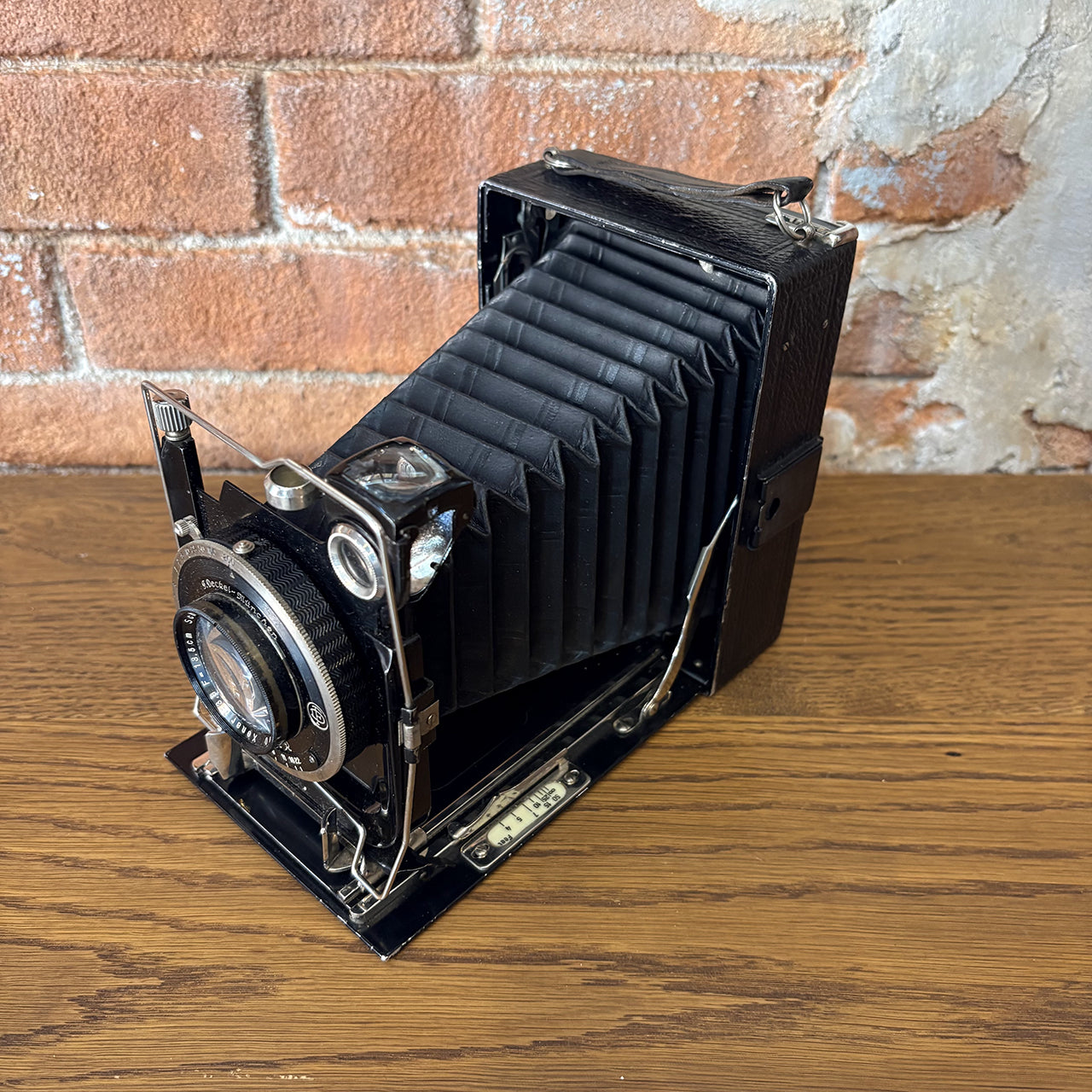 ドイツの名門メーカーF. Deckel-Münchenが手掛けたヴィンテージカメラ。アメリカで買い付けた本物のアンティークアイテムで、精密なシャッターメカニズムとクラシックなデザインが、インテリアとしても圧倒的な存在感を放ちます。