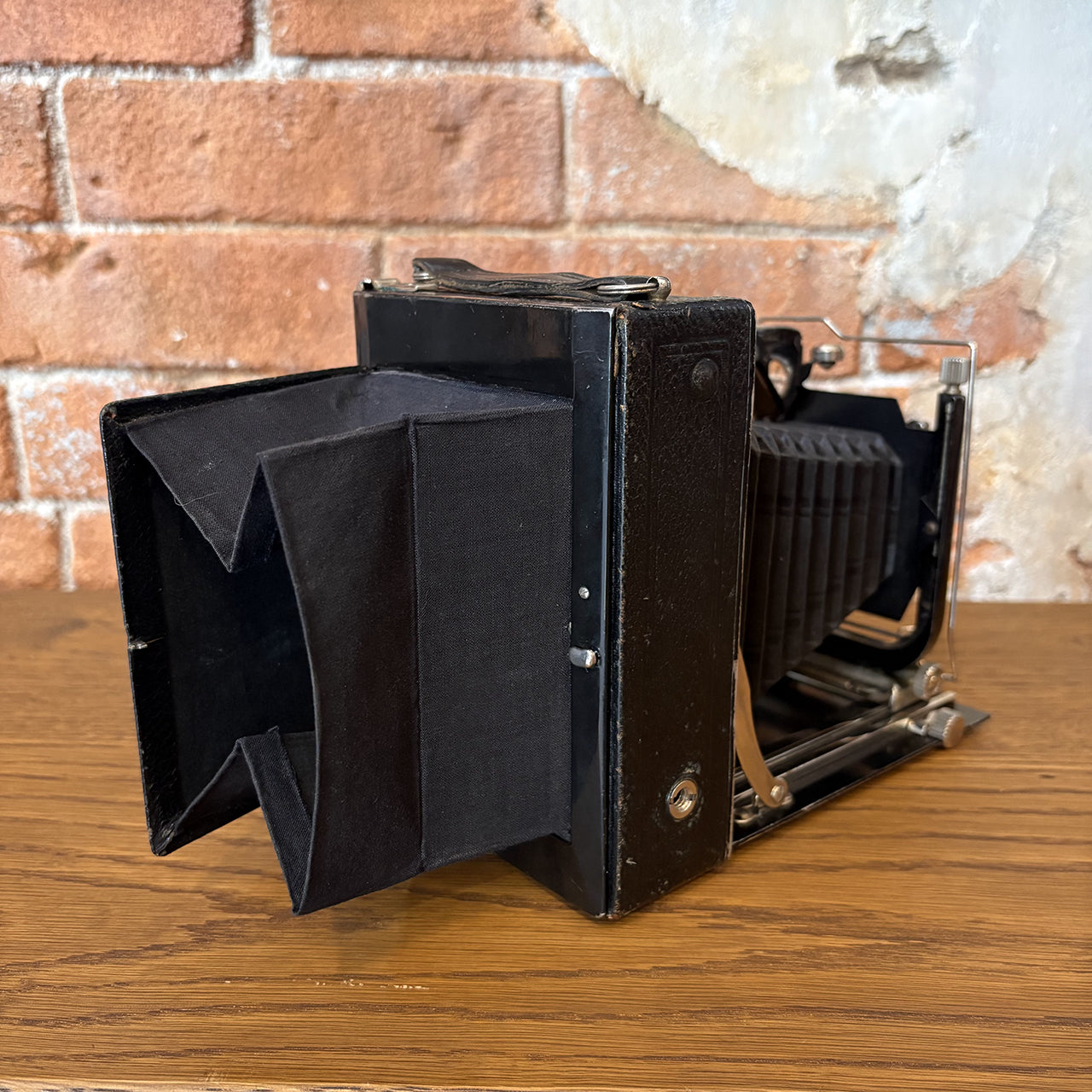現代では入手困難なヴィンテージカメラ。ガレージ、書斎、ショップディスプレイに最適で、クラシックな雰囲気を演出します。撮影機能の動作確認は未実施ですが、メカニカルな美しさを楽しめる逸品です。