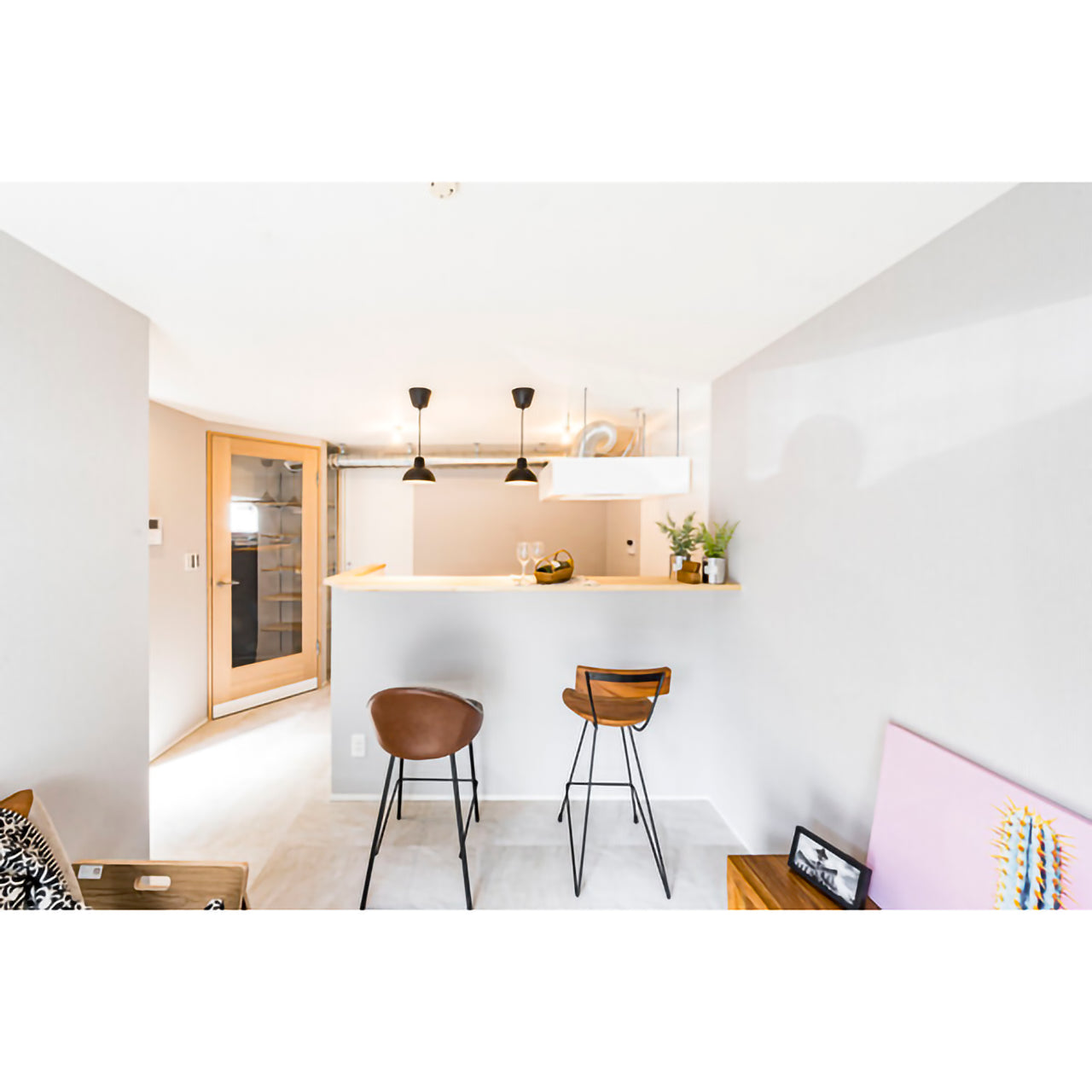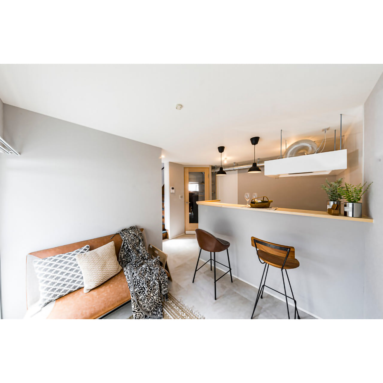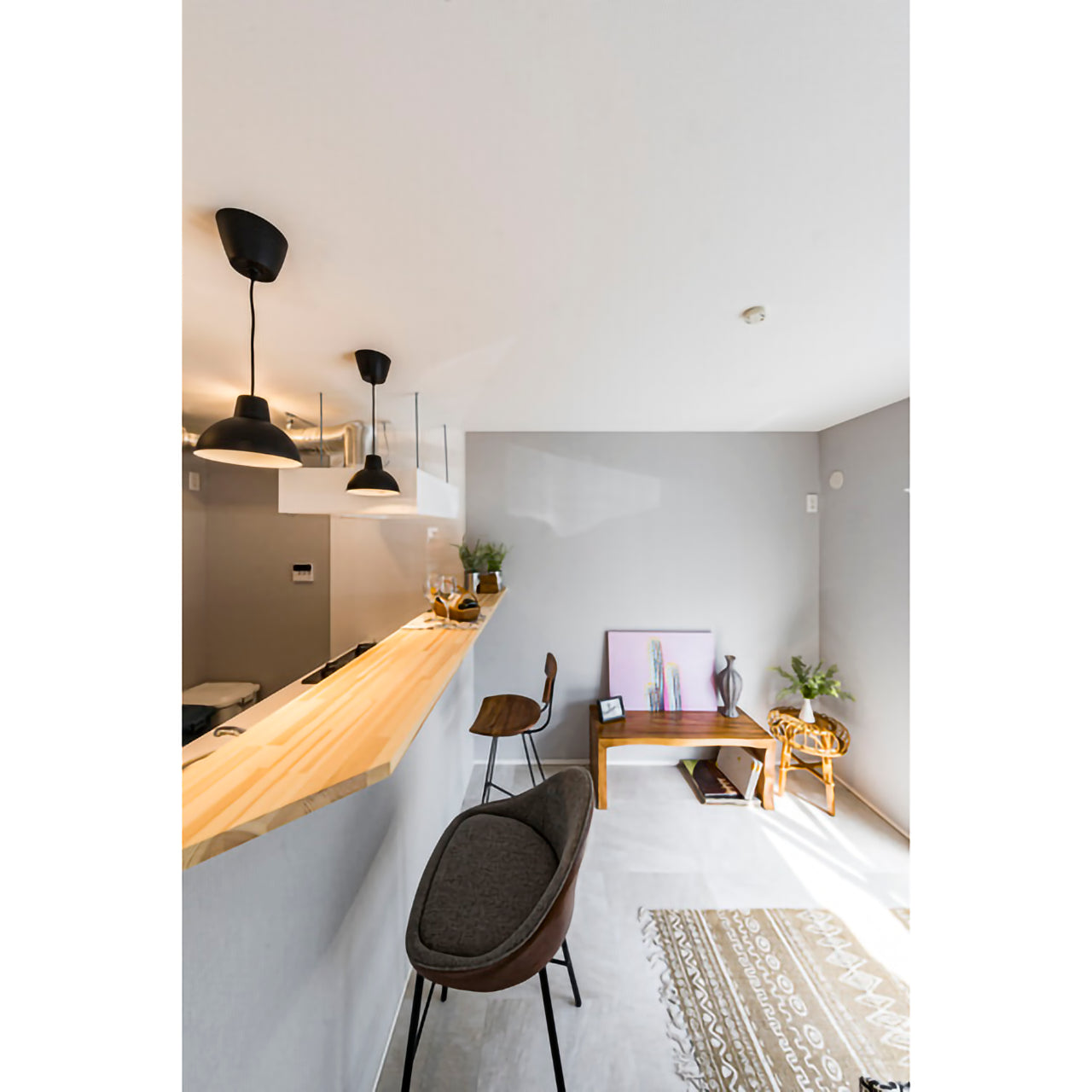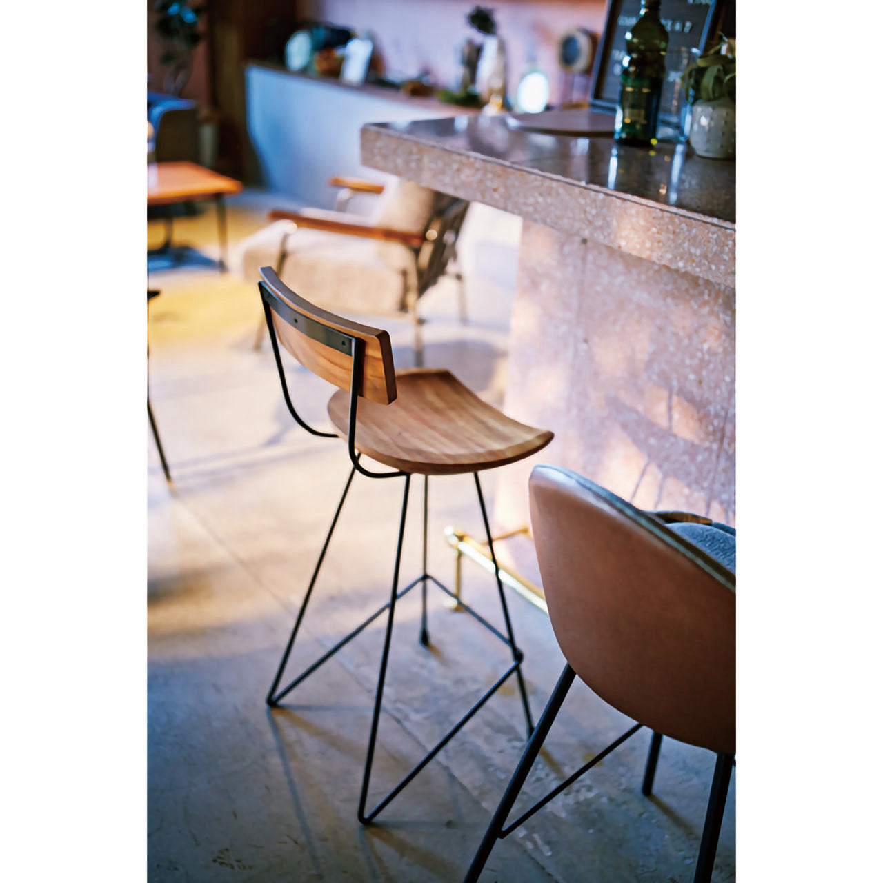 「天然木×スチール」の異素材ミックスが魅力ですが、カウンターチェアとしての高さ(座面高65cm)と軽量設計(約5.5kg)により、移動や配置換えも簡単。カフェやバーのような空間づくりに最適です。