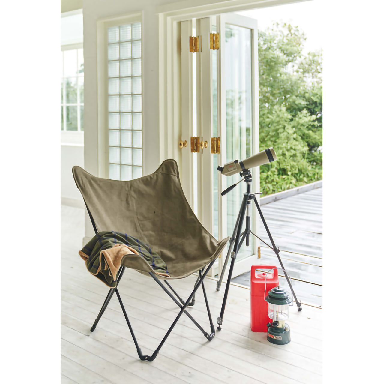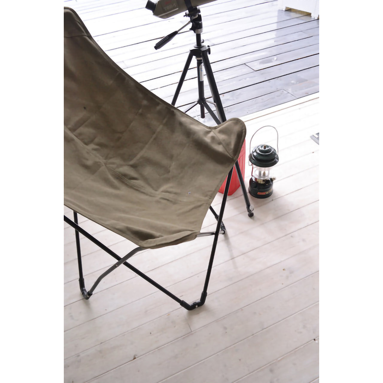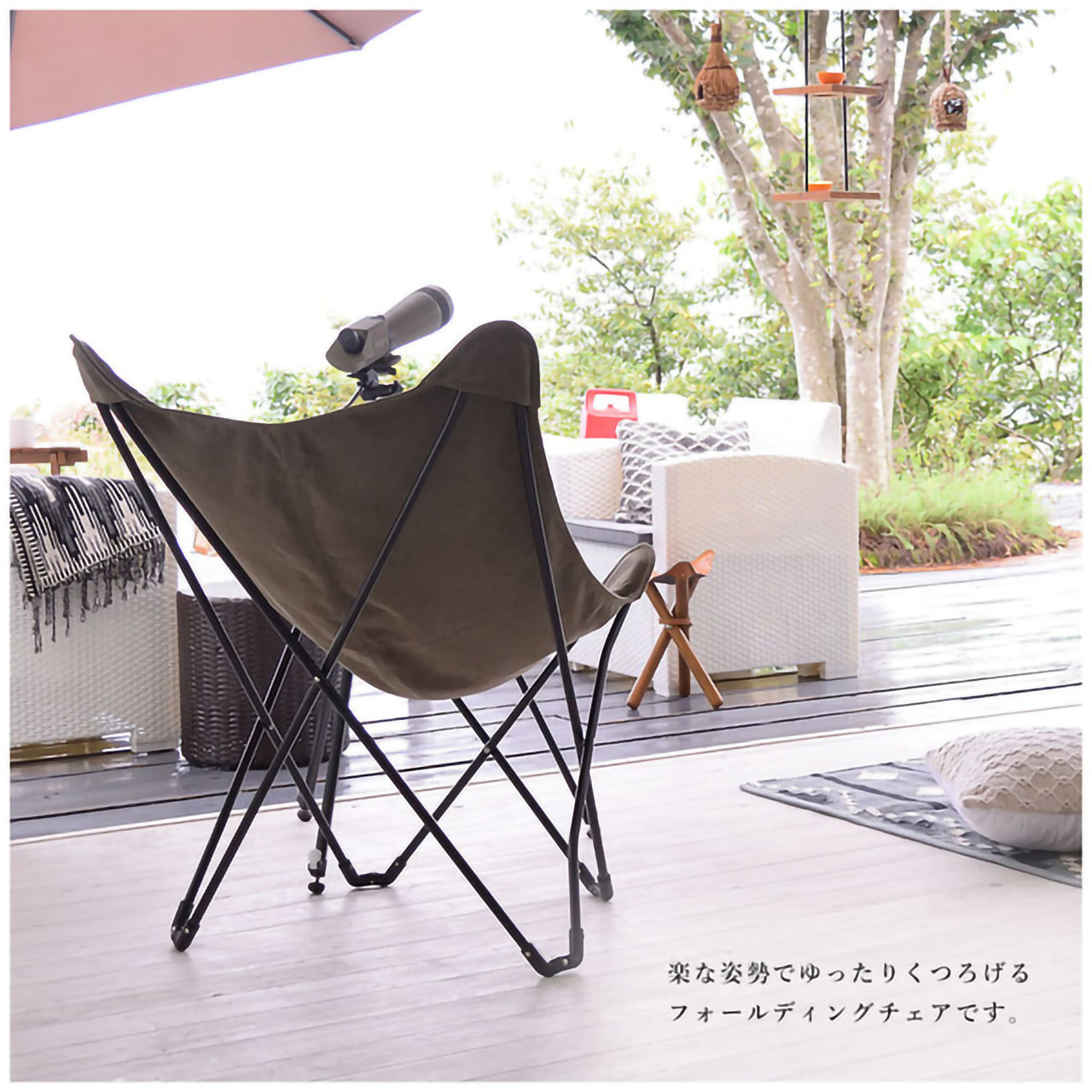他のアウトドアチェアと比べて、デザイン性が高く、インテリアにも馴染みやすいカーキカラー