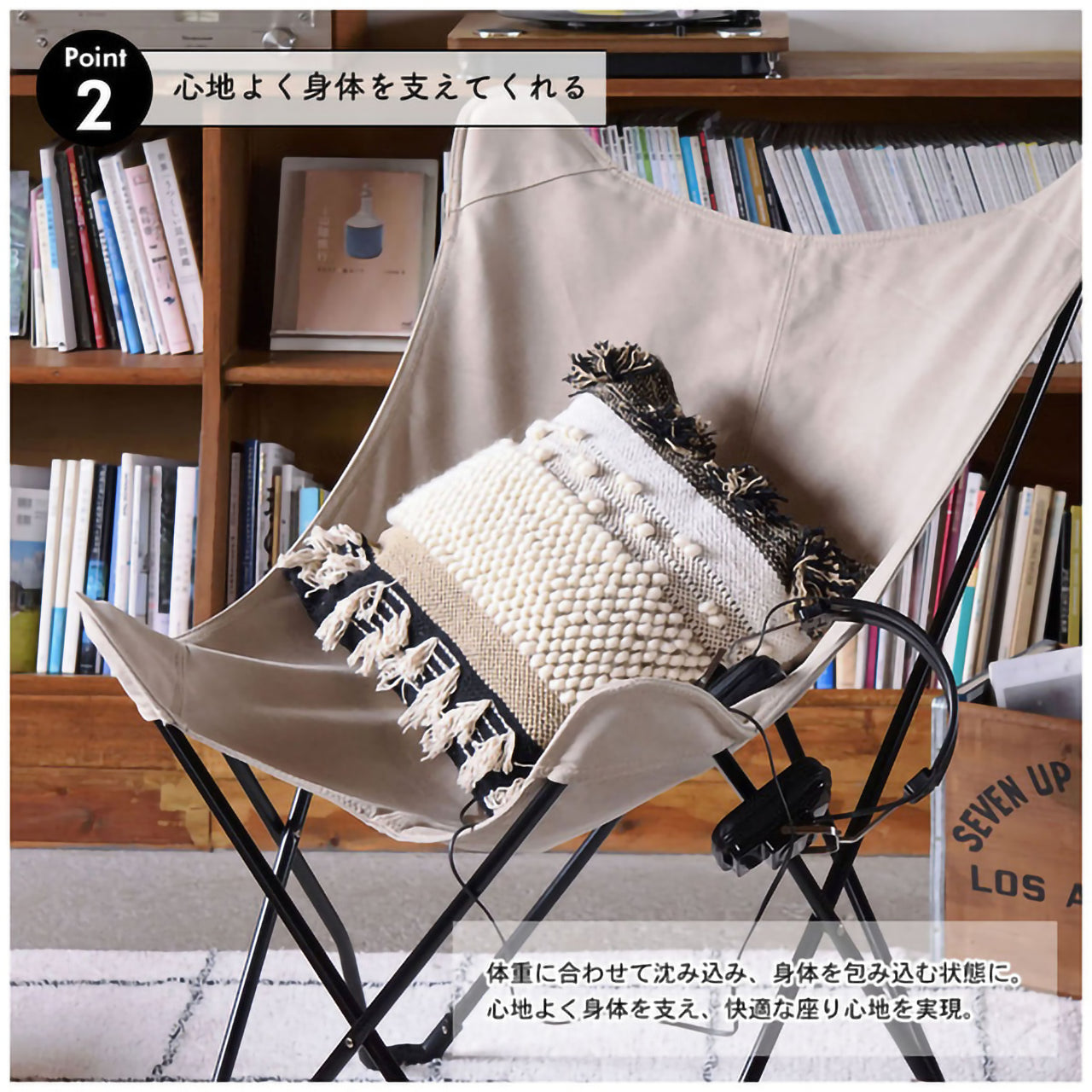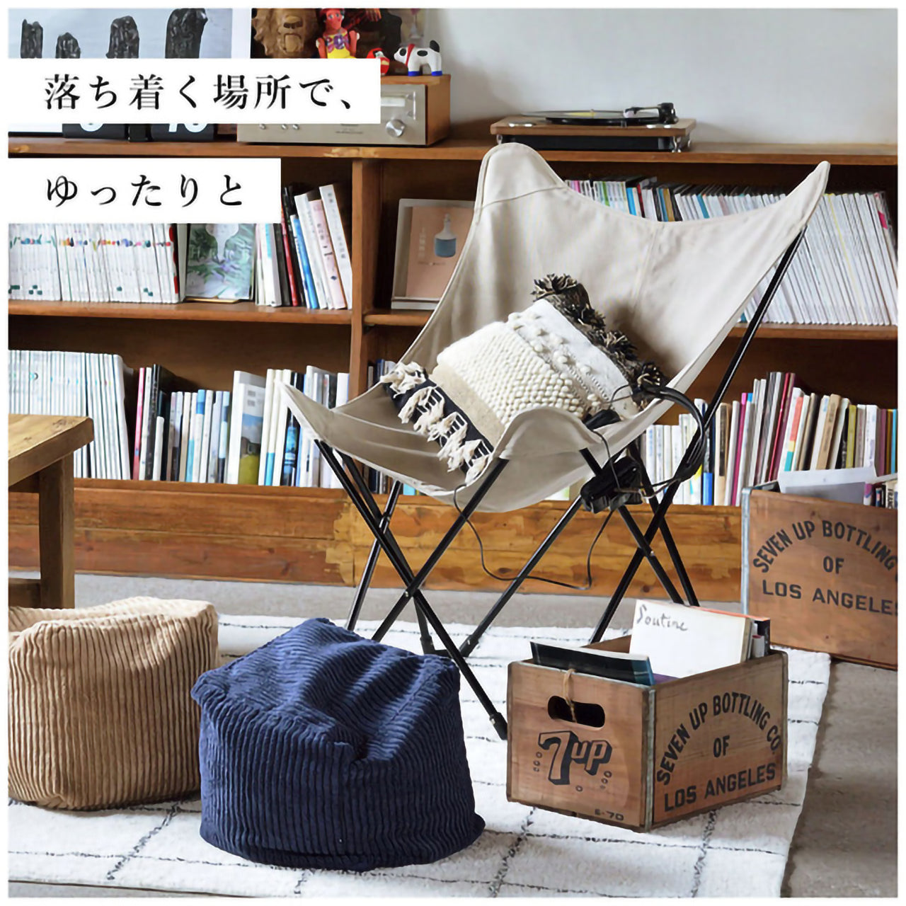 ベージュとカーキカラーの2色がありアウトドアにもインテリアにもマッチ