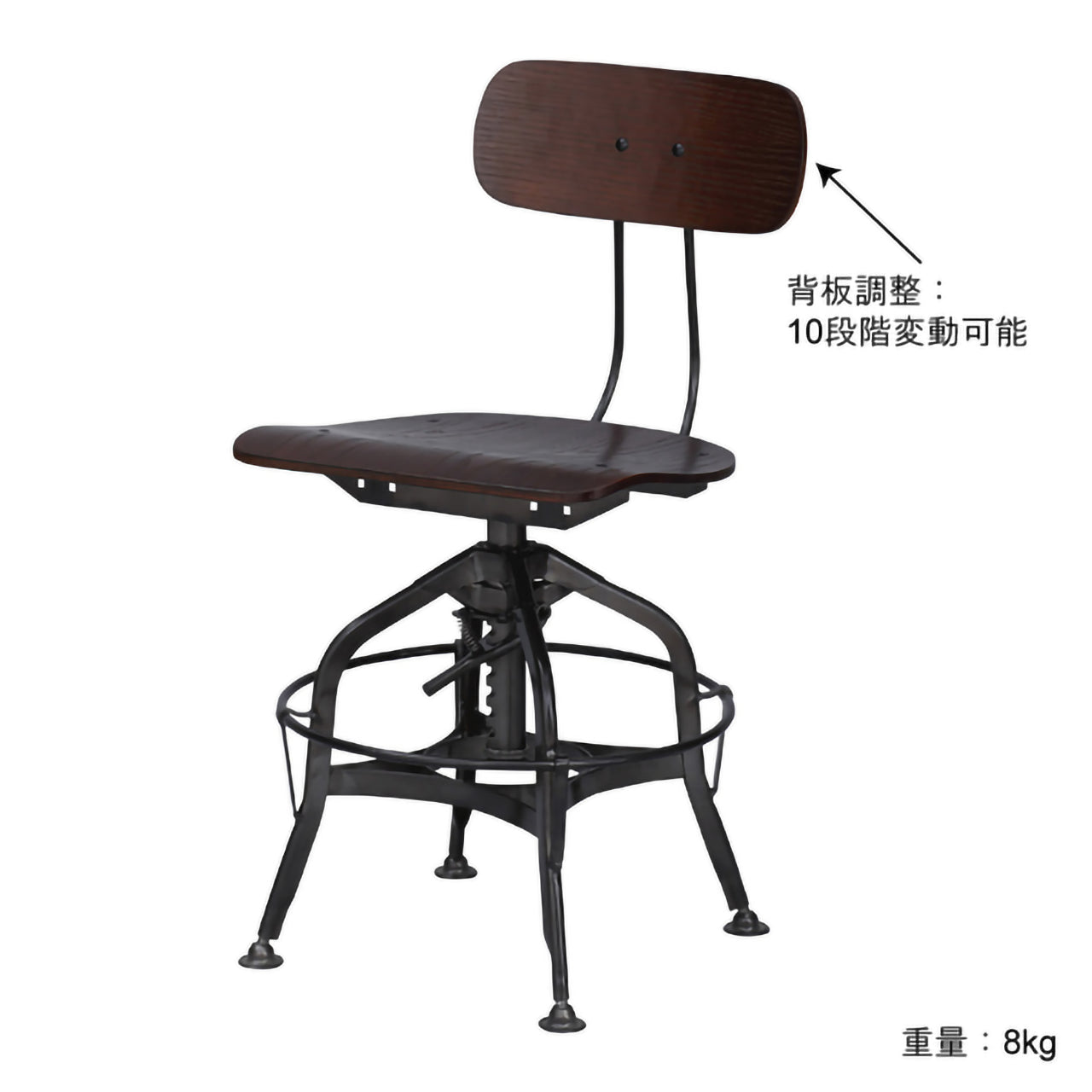 一般的なチェアにはない「背もたれの高さ調整機能」や「昇降・回転機能」を備え、使い勝手が抜群。さらに、ヴィンテージテイストのデザインで、インテリアのアクセントとしても映える一脚です。カラーは明るめのNA(ナチュラル)と重厚感のあるBR(ブラウン)の2色展開。