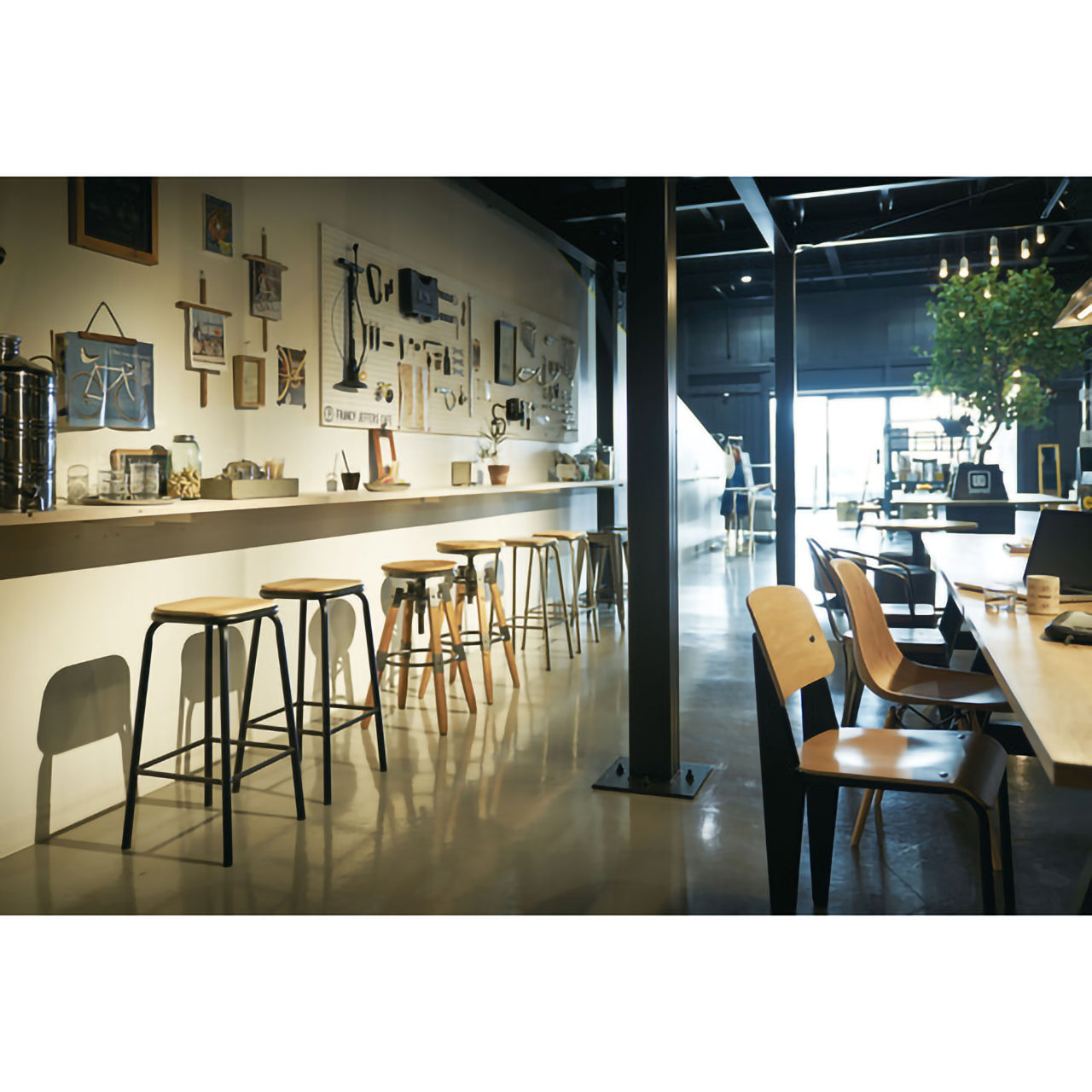 素朴な風合いの木部と無骨なスチール部分のバランス、高いデザイン性で