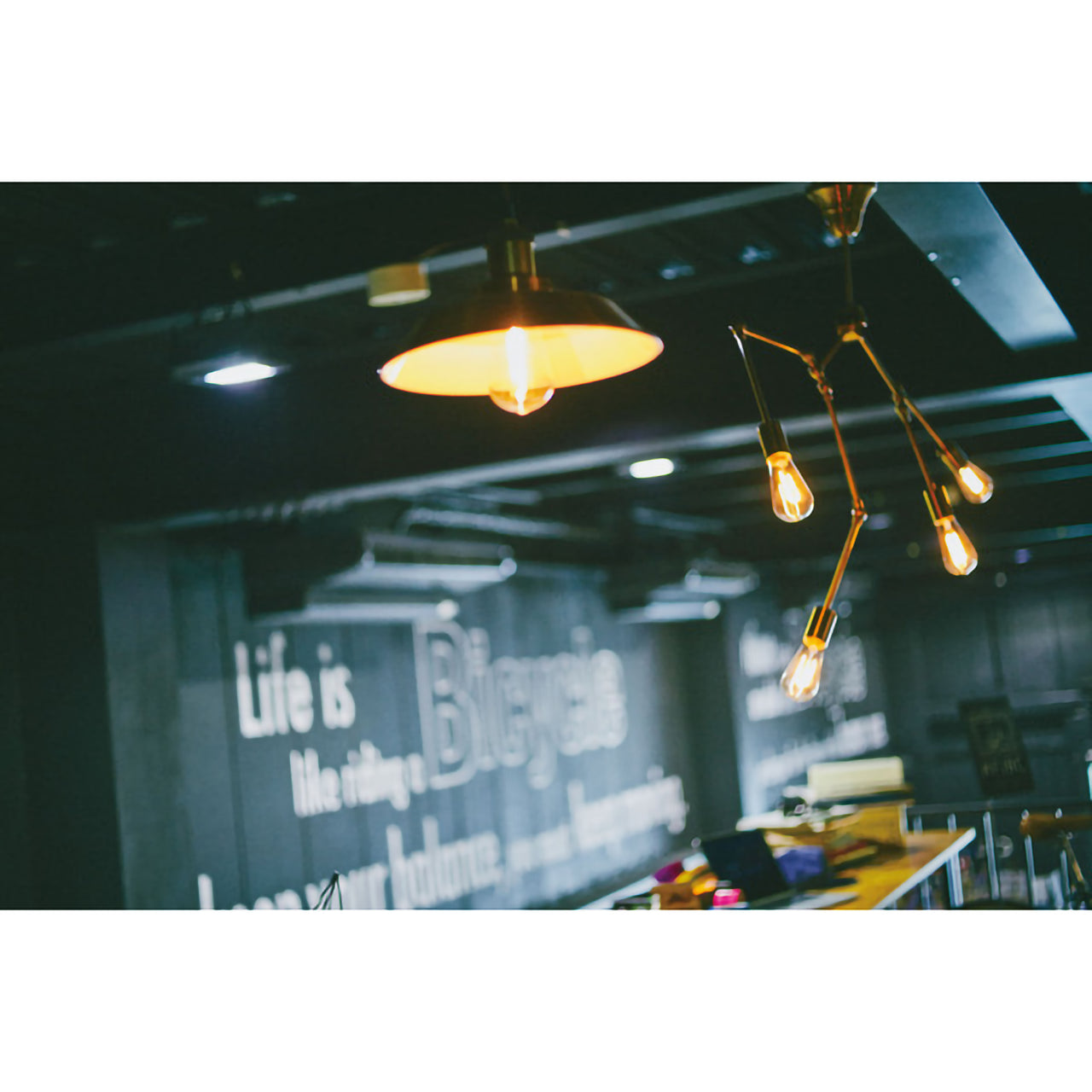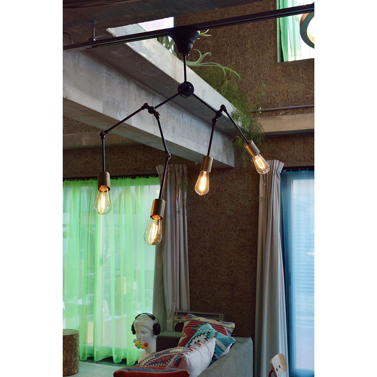 可動式アーム×4灯、ブラック&ゴールドが映えるブルックリンスタイル照明