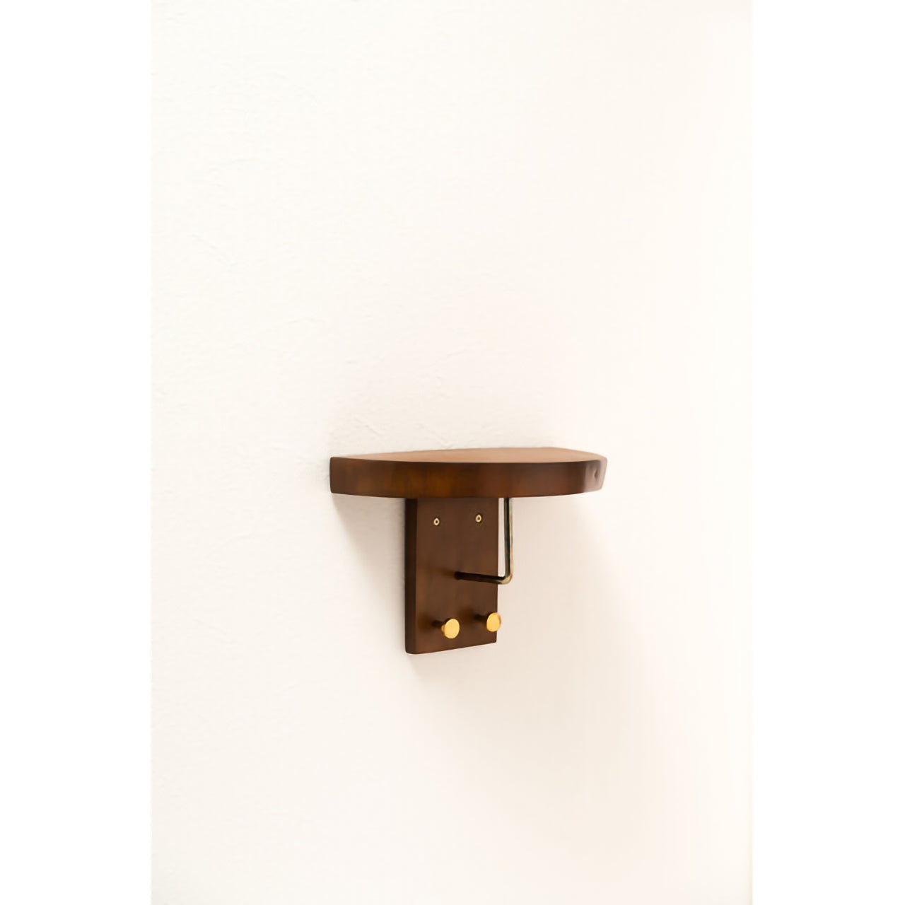 天然木の自然なフォルムを活かした一点物のような表情が、空間に特別感を与えます。タオル掛けとしてはもちろん、ちょっとした小物の収納やディスプレイにも活用できる、自由度の高いウォールハンギングアイテムです。