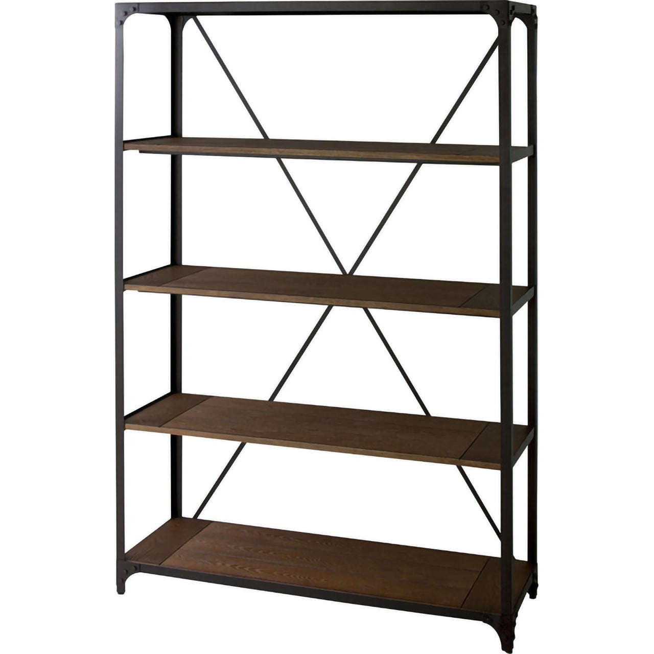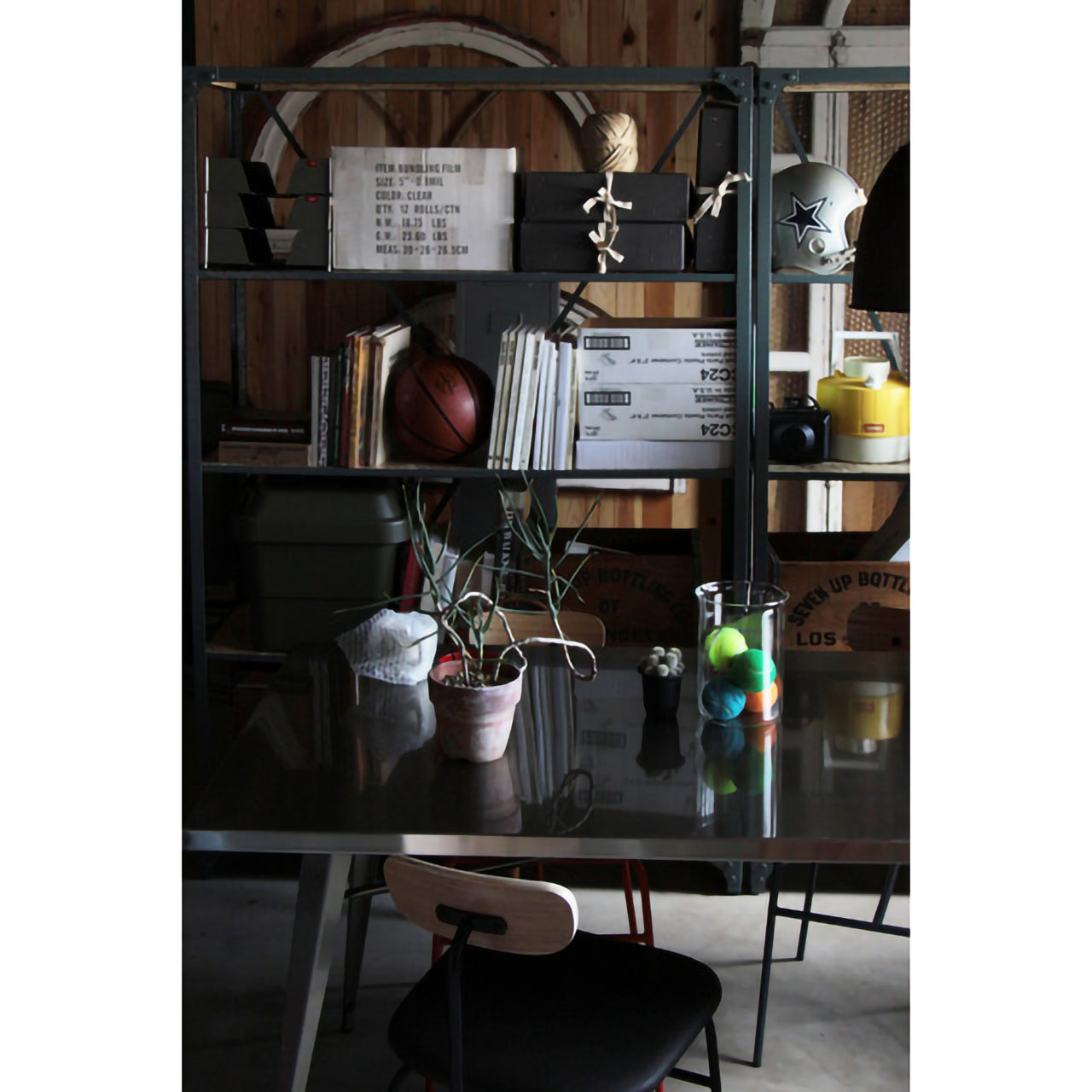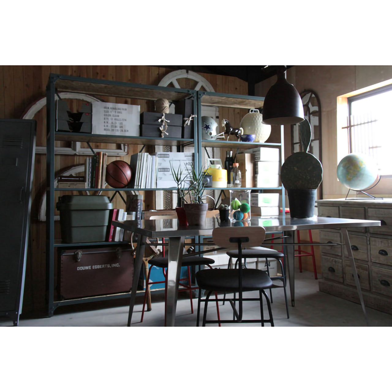 インテリアに重厚感と個性をプラスする、ヴィンテージスタイルのワイドラック。スチールと天然木(アッシュ材)の異素材を組み合わせたデザインが、インダストリアルな雰囲気を演出。高さ180cm・幅121cmの大容量4段ラックは、リビングや書斎、ショップ什器としても活躍します。