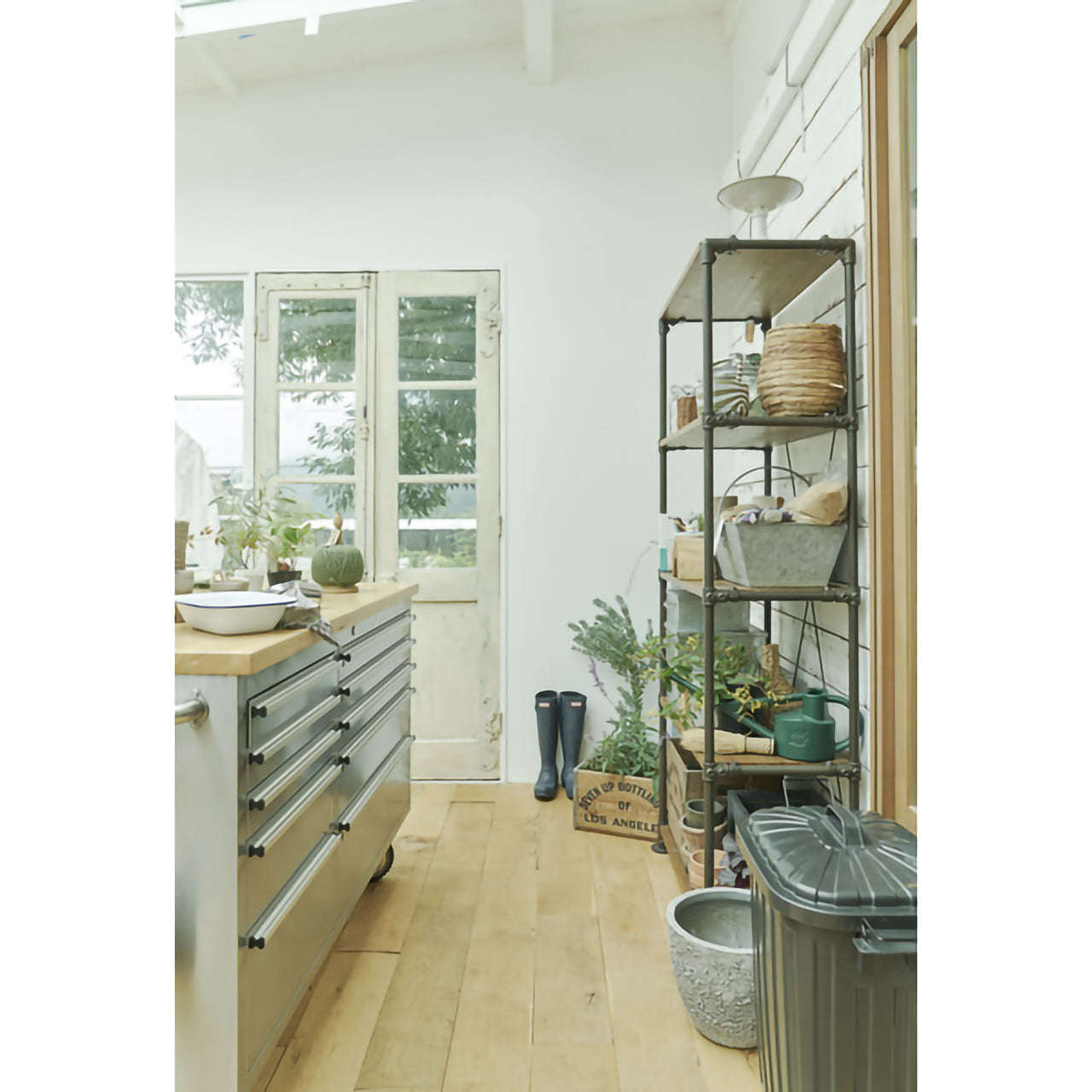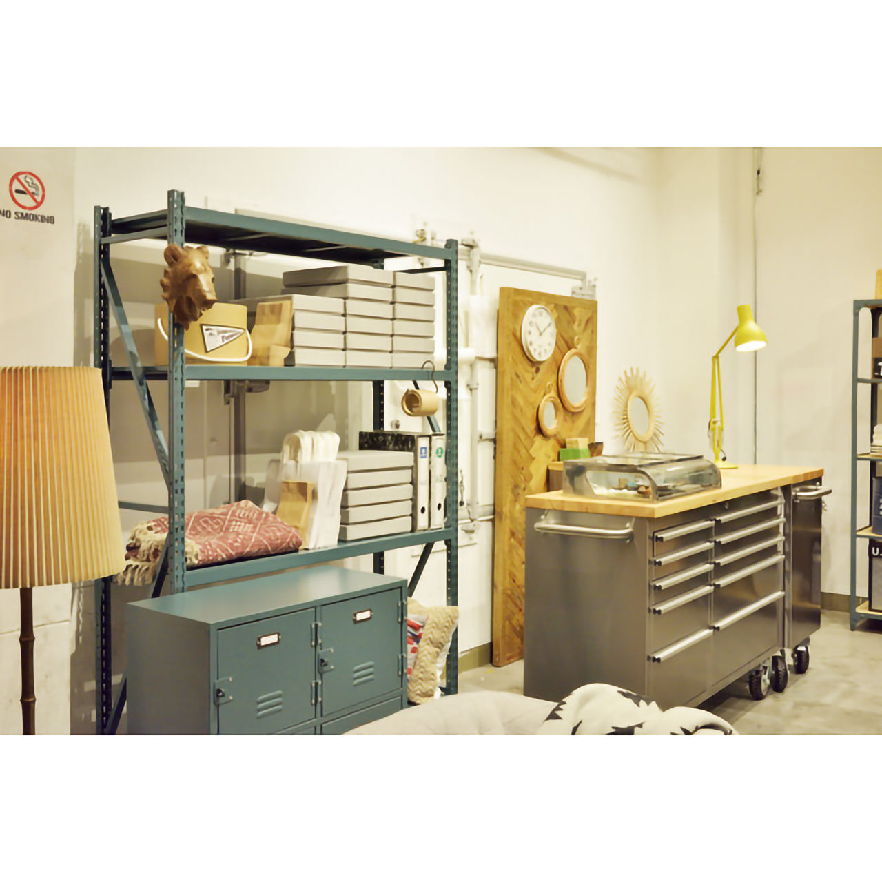 幅157cmのワイド設計で、工具収納はもちろん、店舗什器や作業台としても活躍します 。