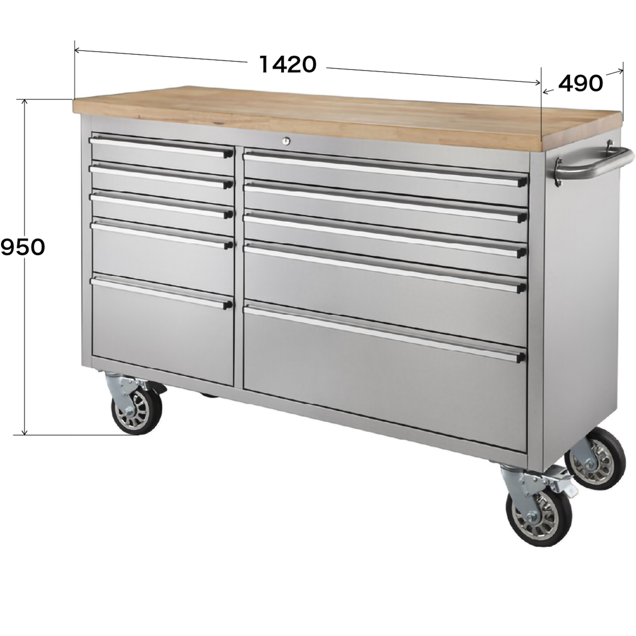 GB-S14 ツールキャビネット|幅142cmの大型収納、ステンレス×天然木の高機能キャビネット