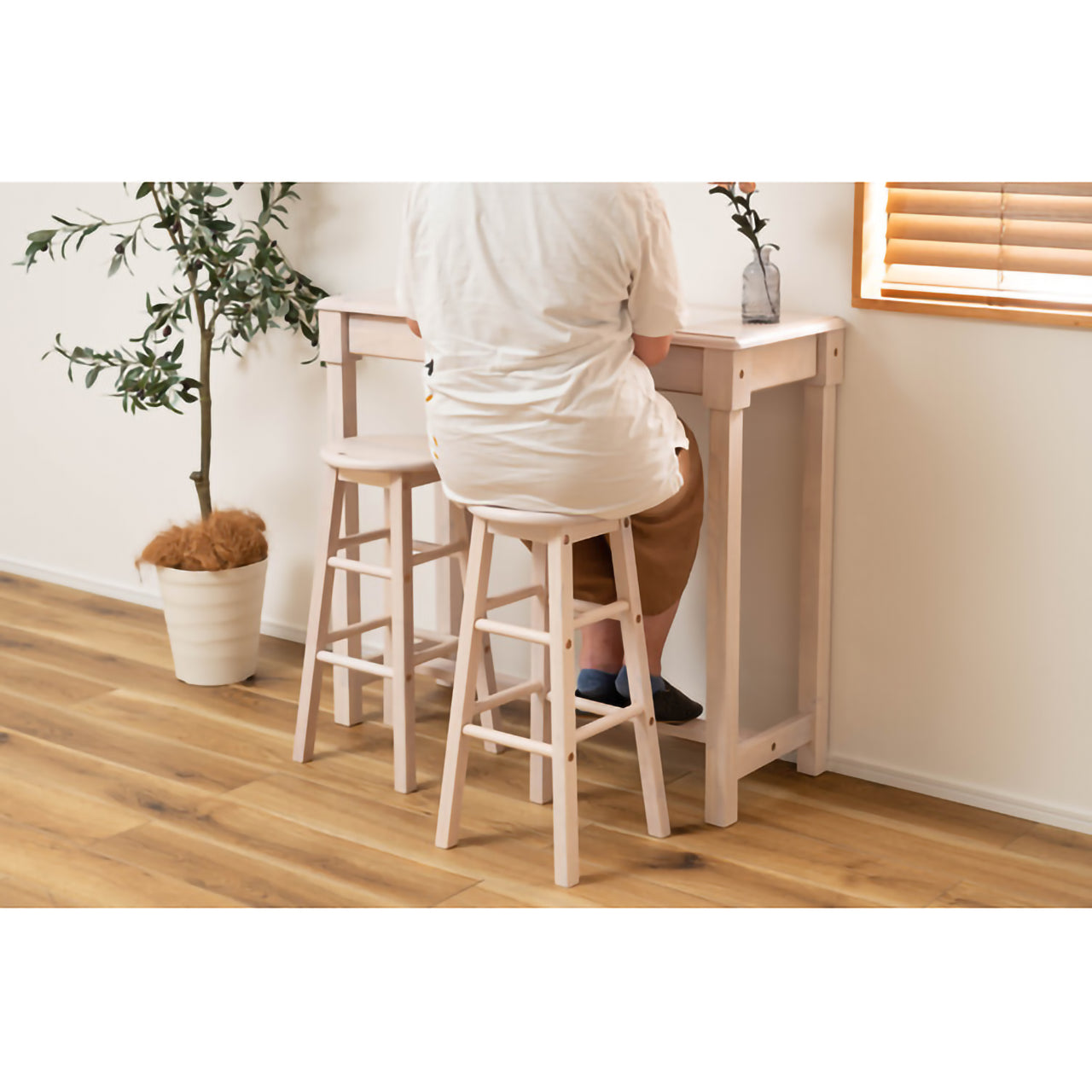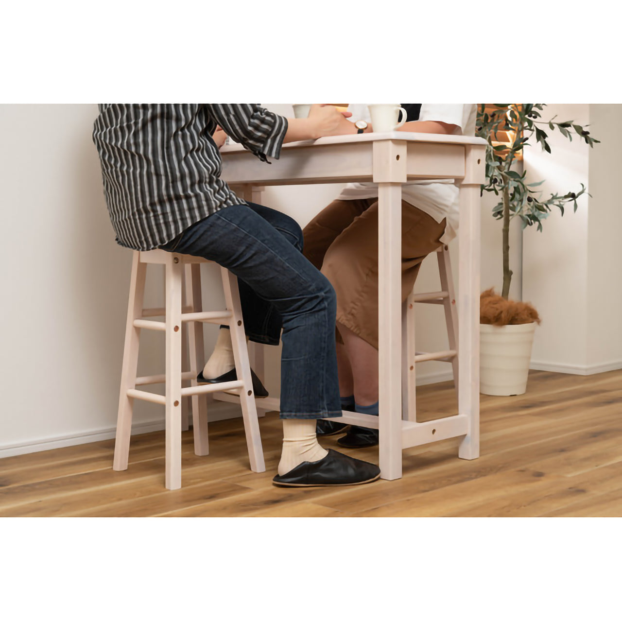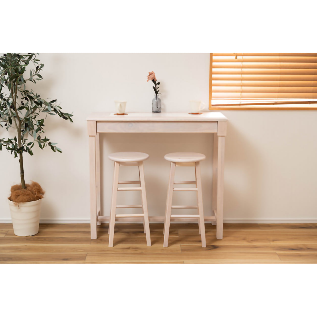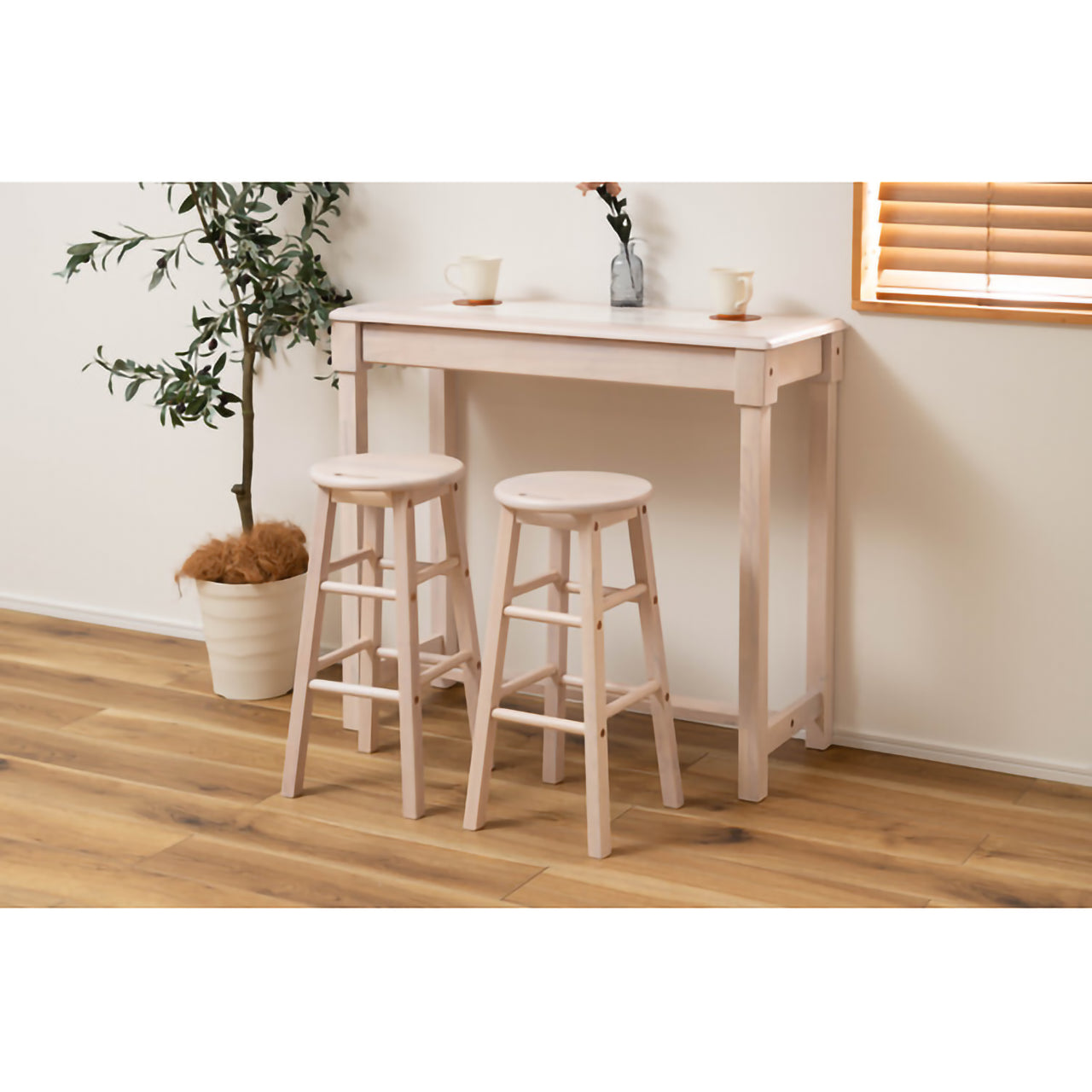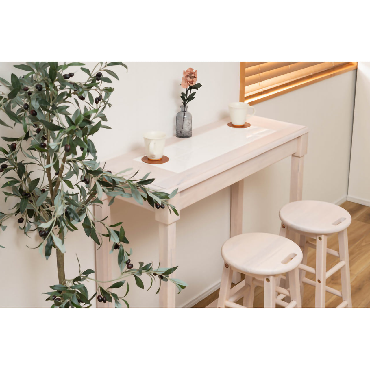 天然木ラバーウッドとホワイトタイルの組み合わせが、ナチュラルで清潔感のある空間を演出するナチュラ カウンタースツールセット(テーブル×1/スツール×2)。