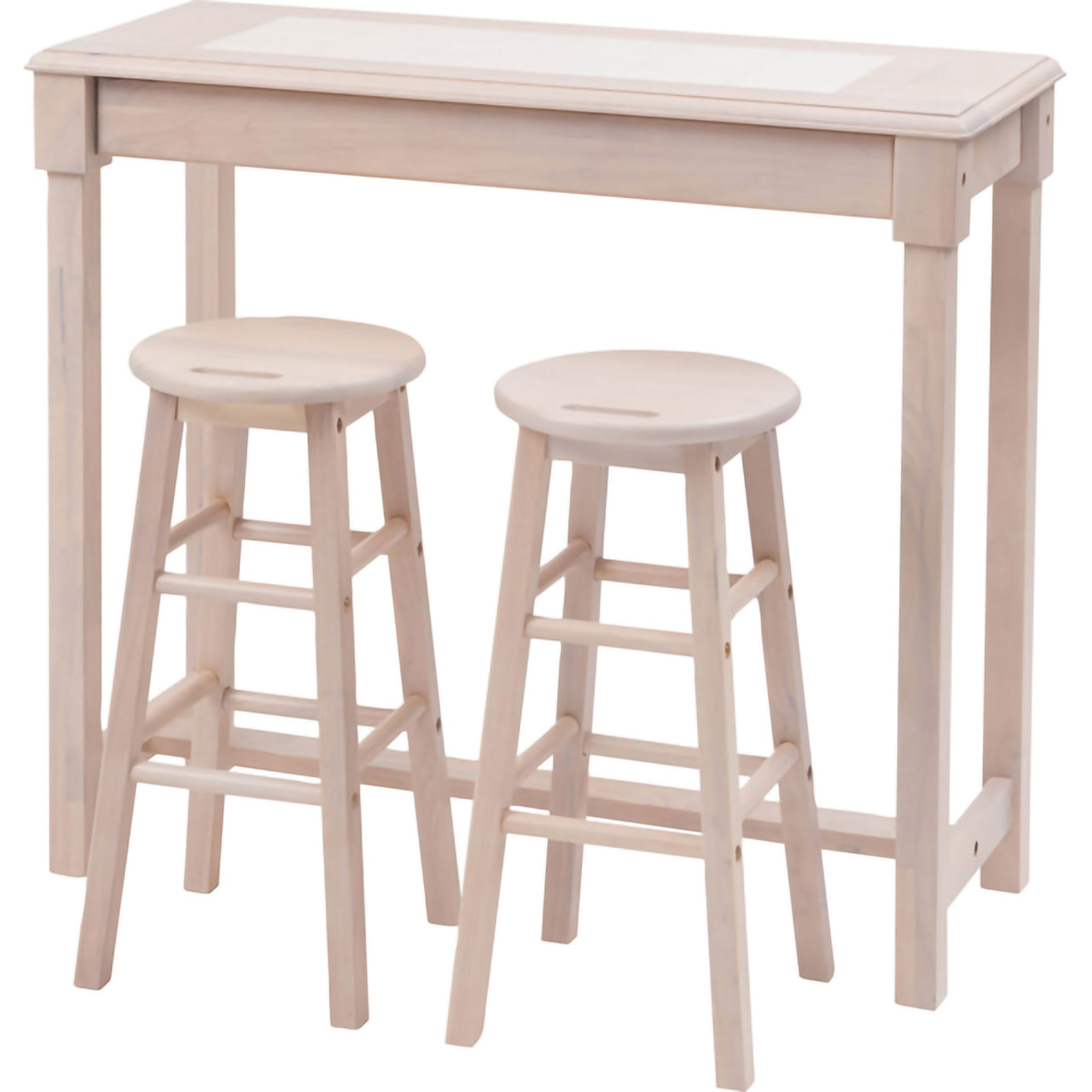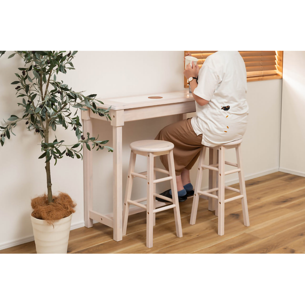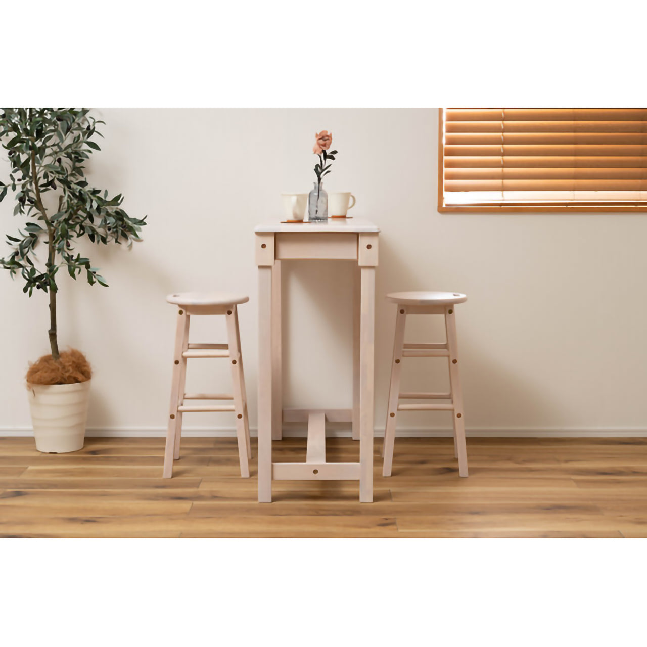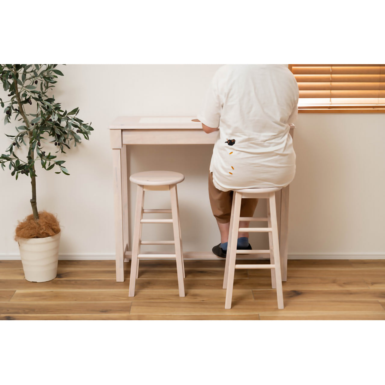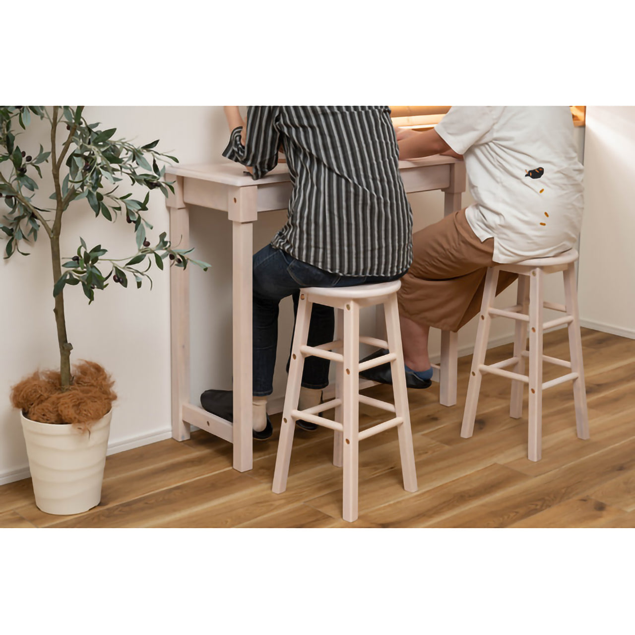 天然木ラバーウッドとホワイトタイルの組み合わせが、ナチュラルで清潔感のある空間を演出するナチュラ カウンタースツールセット(テーブル×1/スツール×2)。