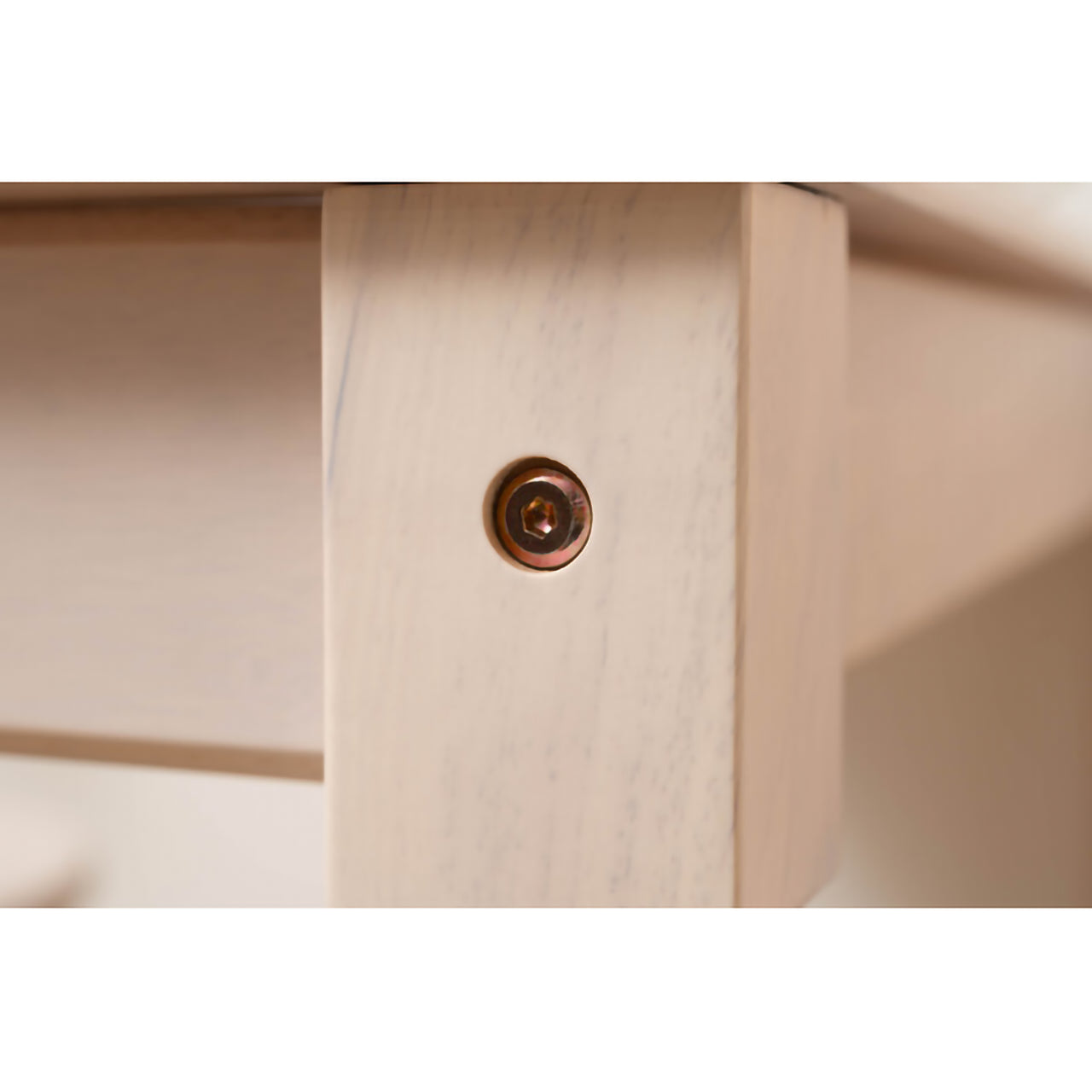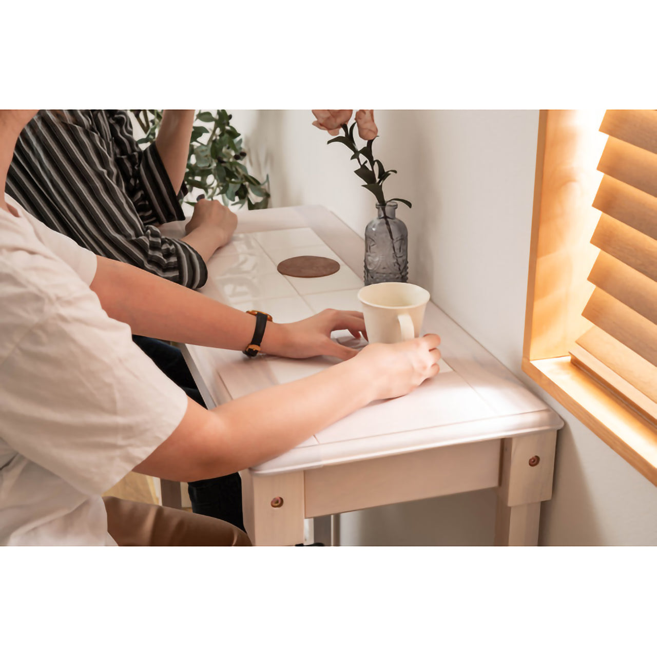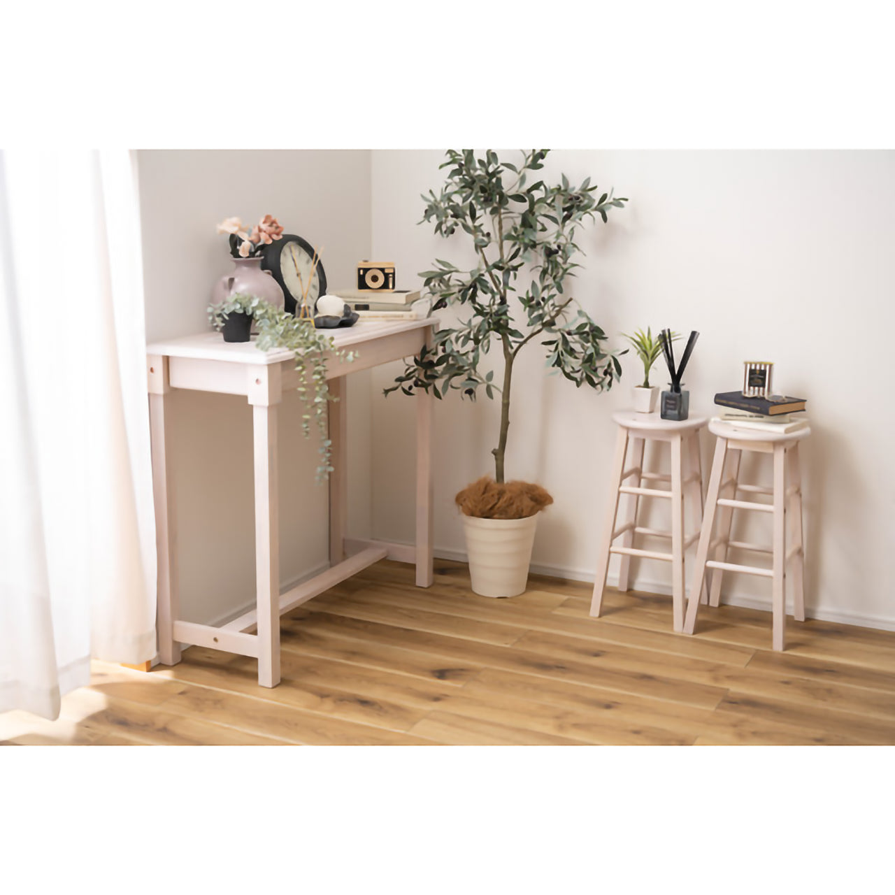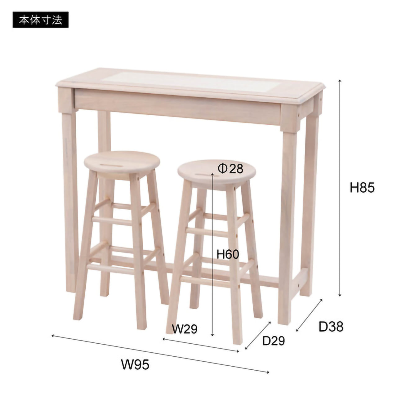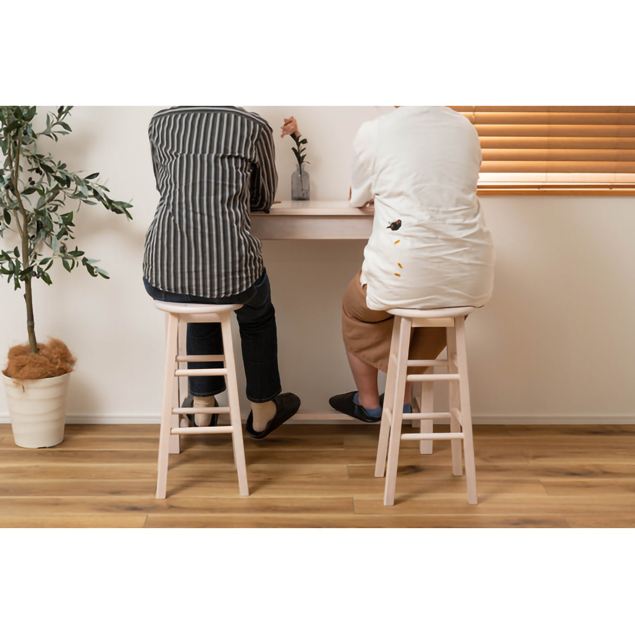 天然木ラバーウッドとホワイトタイルの組み合わせが、ナチュラルで清潔感のある空間を演出するナチュラ カウンタースツールセット(テーブル×1/スツール×2)。