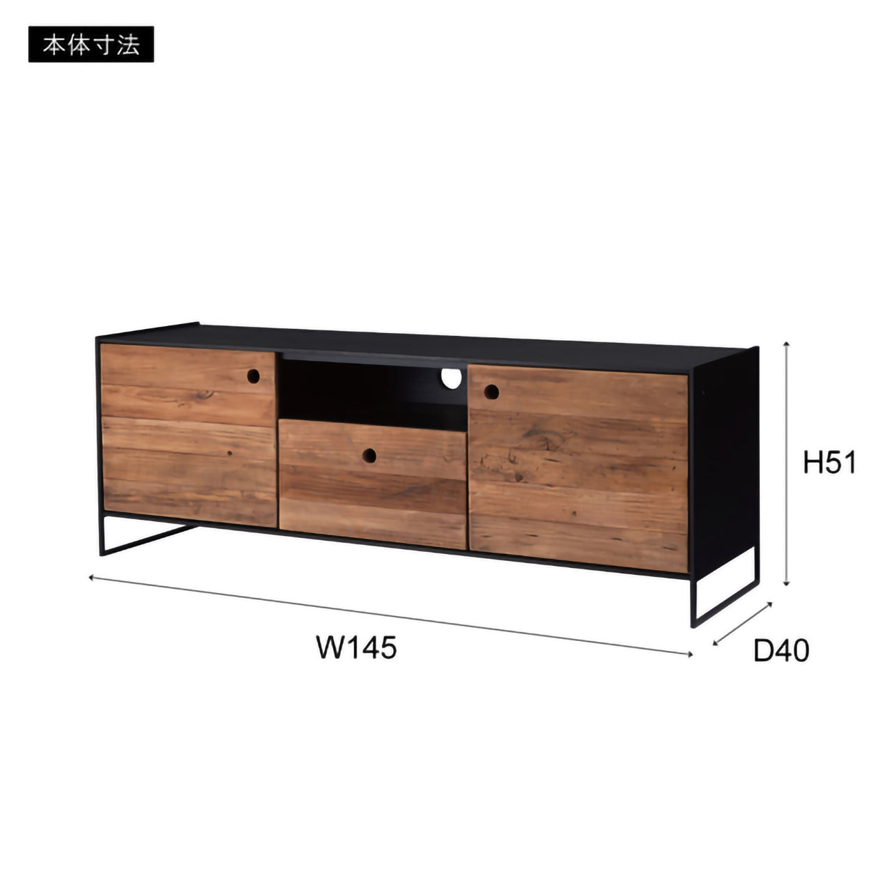 天然木パイン古材とアイアンを組み合わせ、ヴィンテージ感とインダストリアルな雰囲気を兼ね備えた存在感抜群のテレビ台。