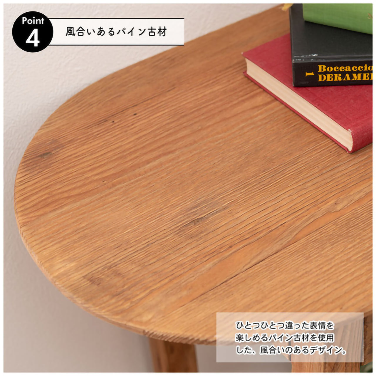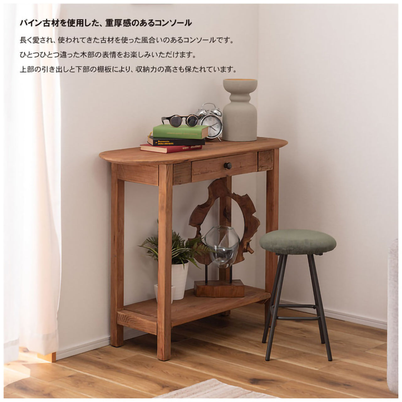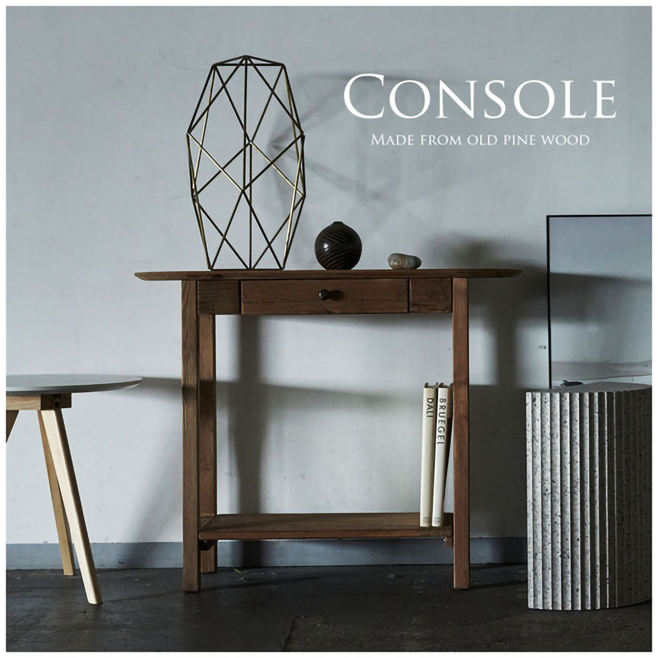 天然木パイン古材を使用したこのコンソールは、使い込まれたような風合いと実用性を兼ね備えたヴィンテージスタイルのスリムテーブル。