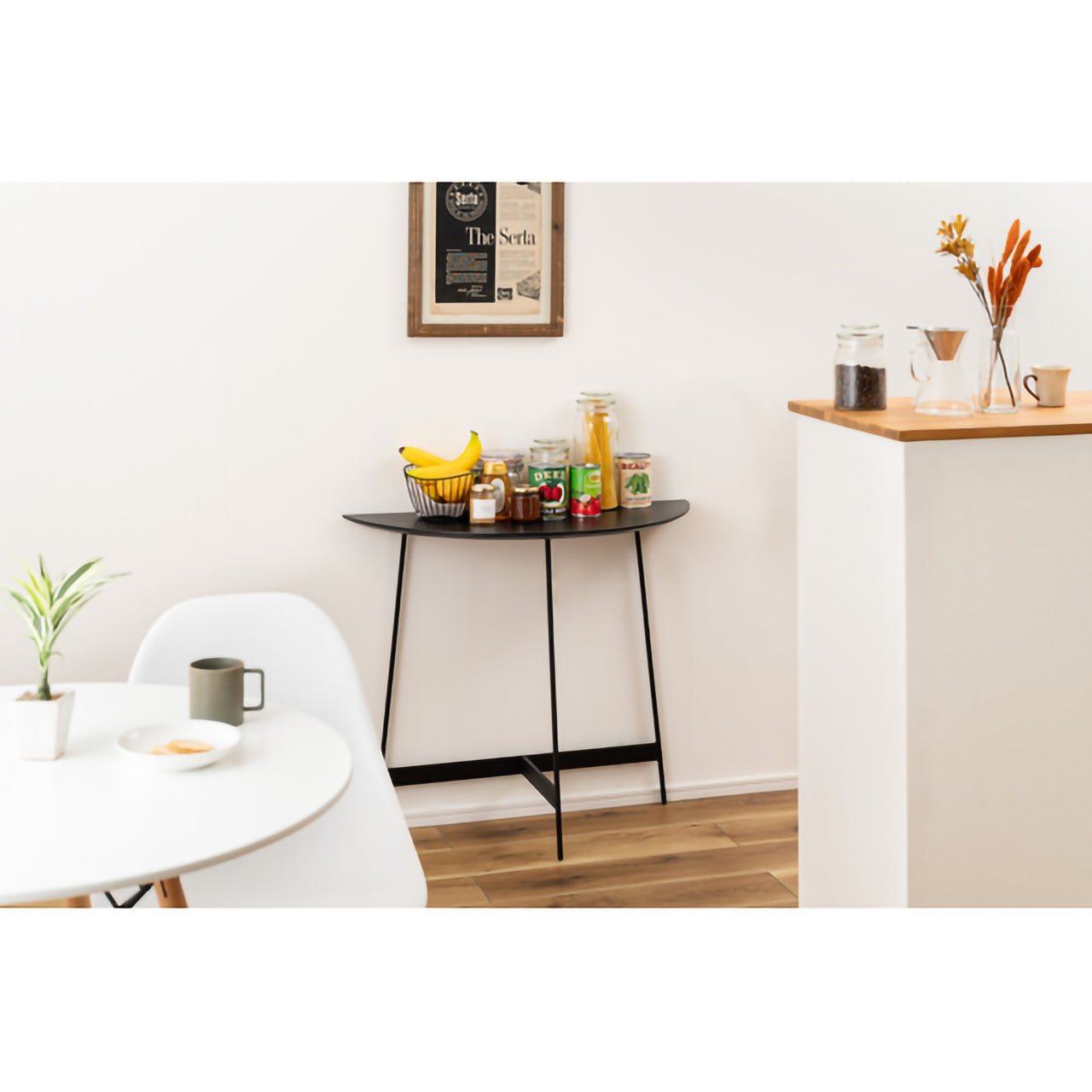 半円形の天板が壁面にぴったりフィットし、玄関・リビング・寝室・ワークスペースなど、さまざまな場所で活躍します。