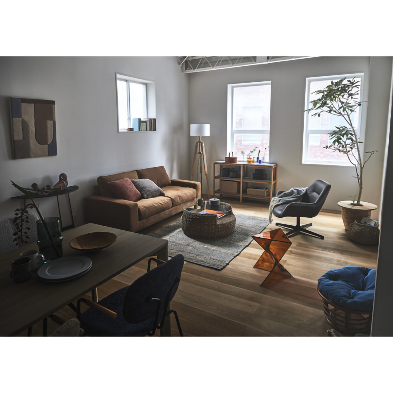 半円フォルムが空間にやさしい印象を与え、壁面やソファ裏にもフィット