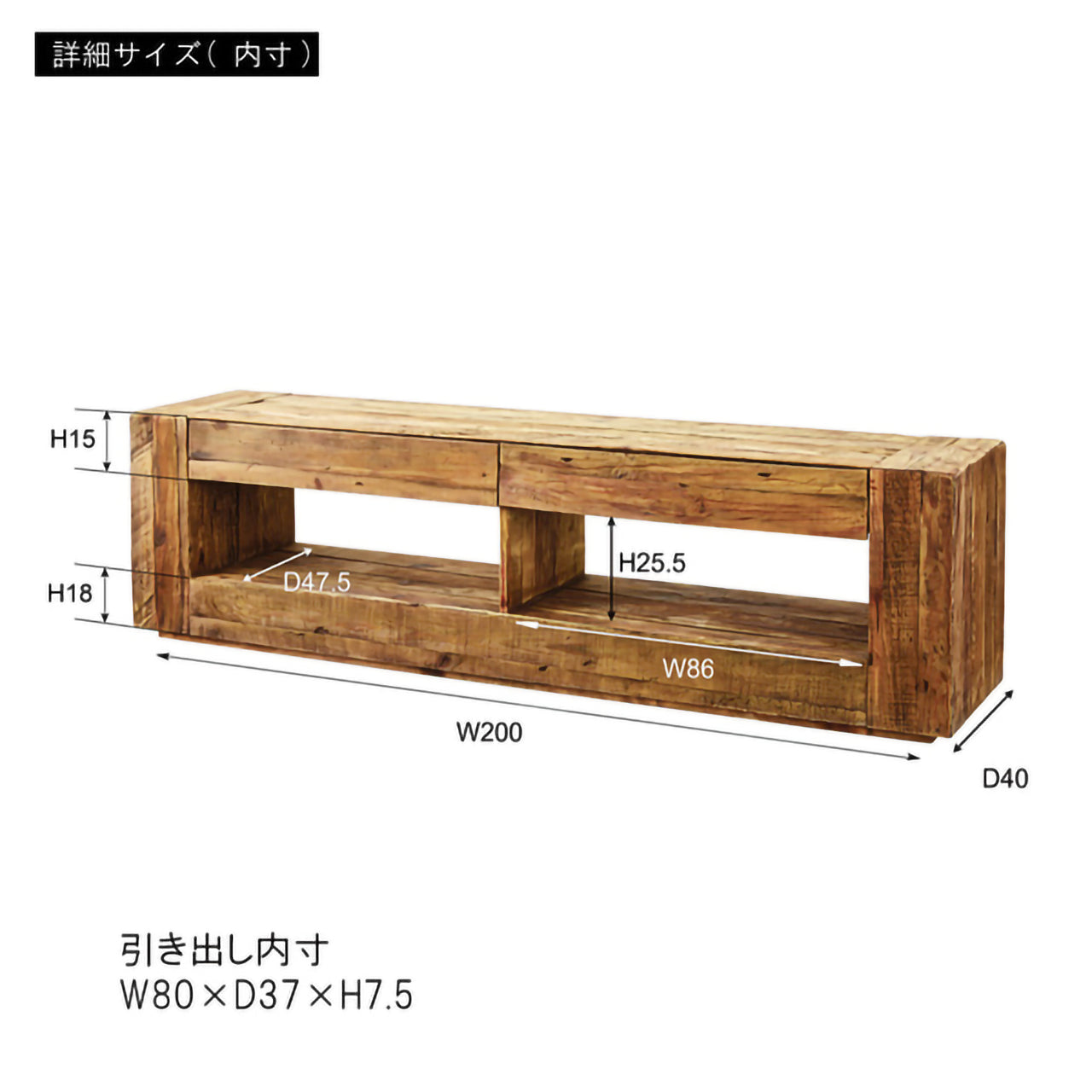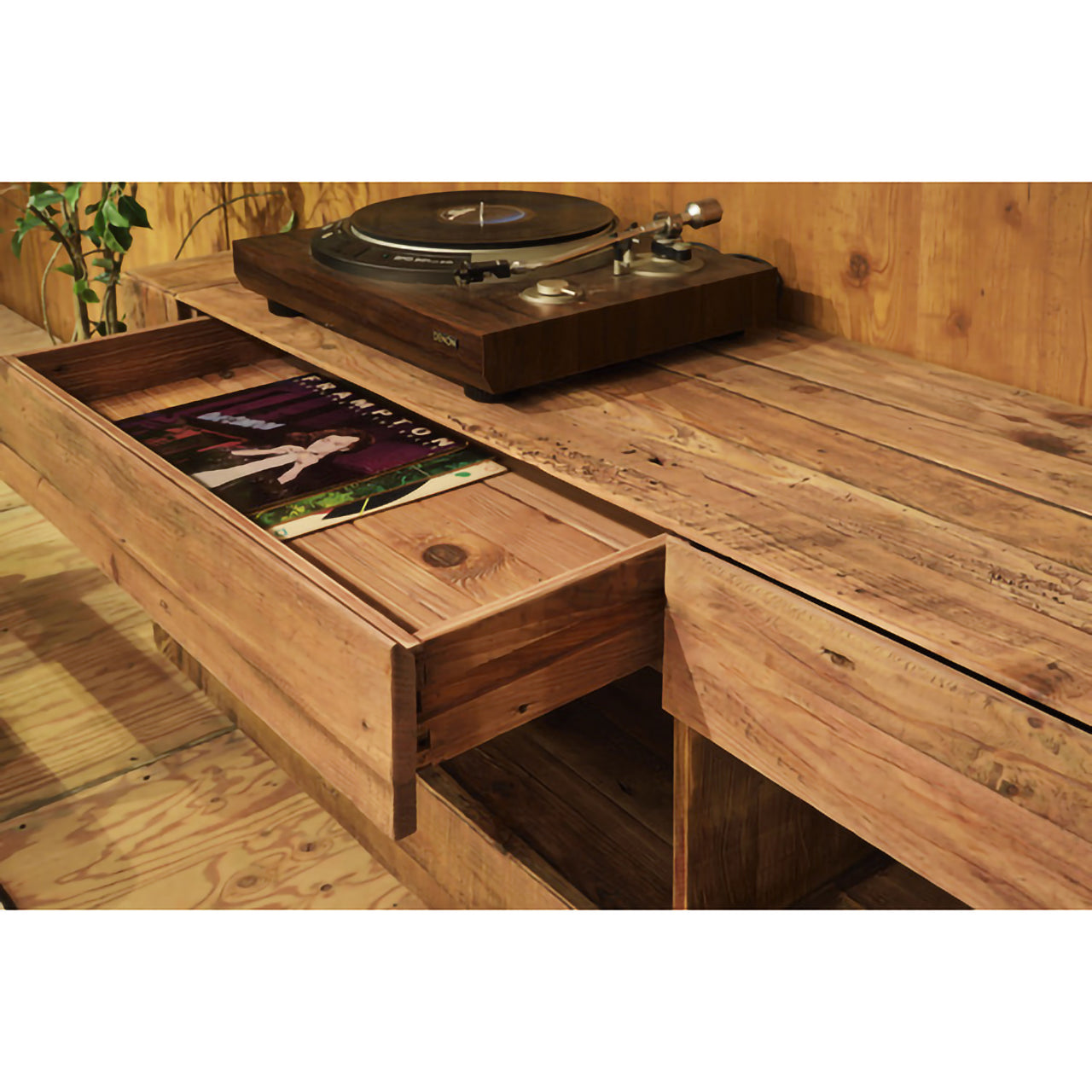 天然木パイン古材を贅沢に使用した、このローボードは、ヴィンテージ感と実用性を兼ね備えた大型テレビ台。