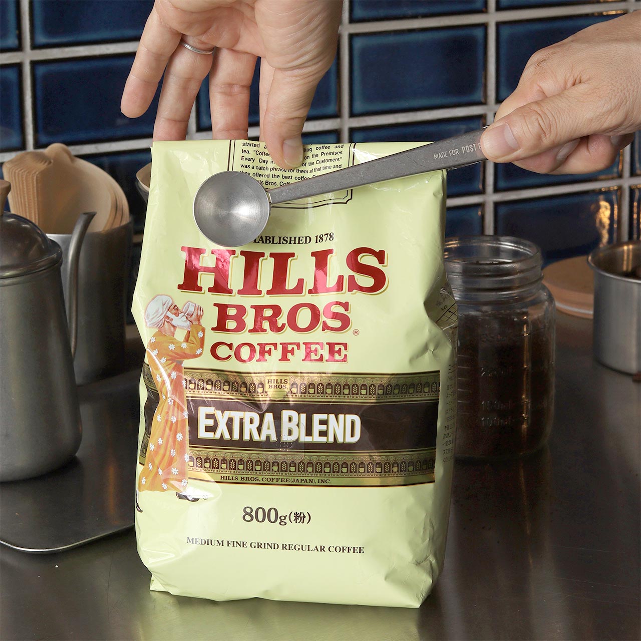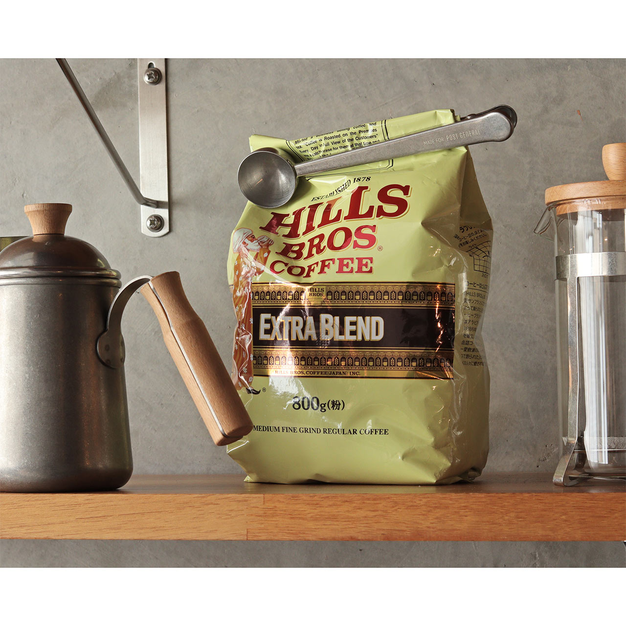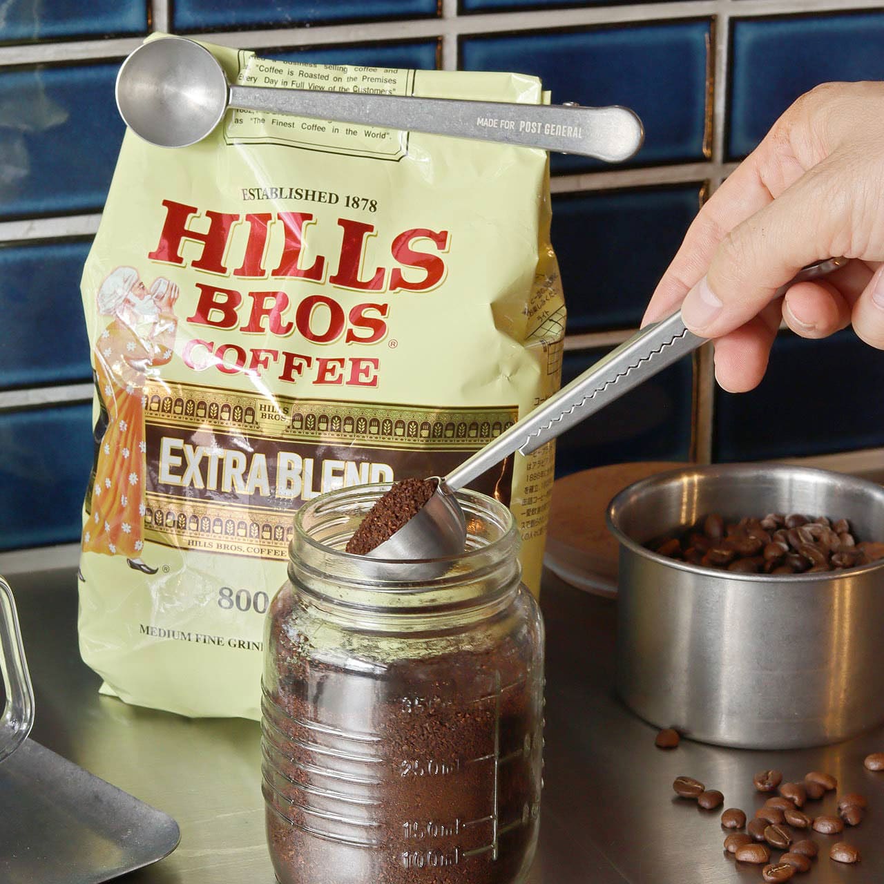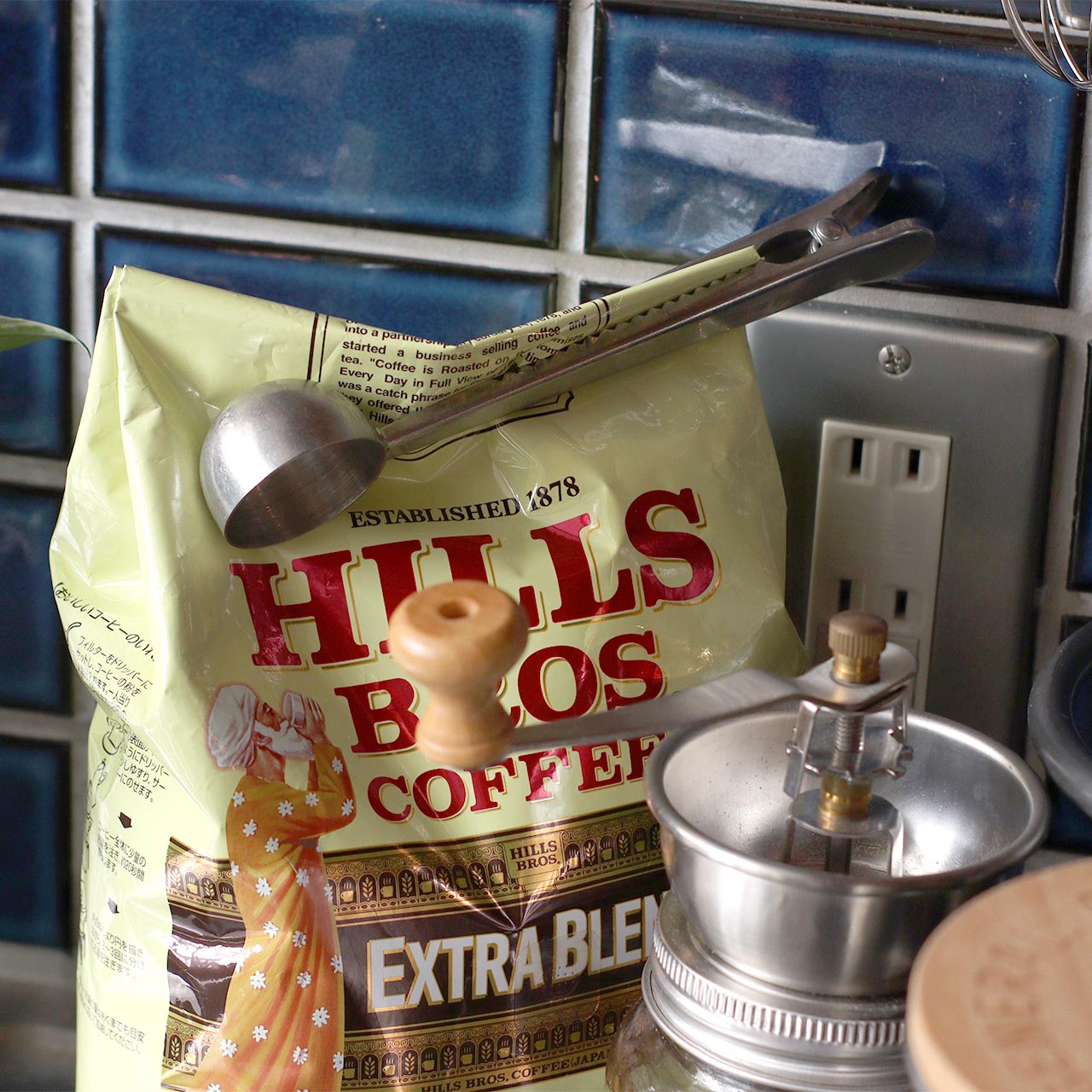 スプーンすり切り1杯で約8gのコーヒー粉を量ることができ、そのままクリップで袋の封ができるので、忙しい朝に便利なアイテムです。