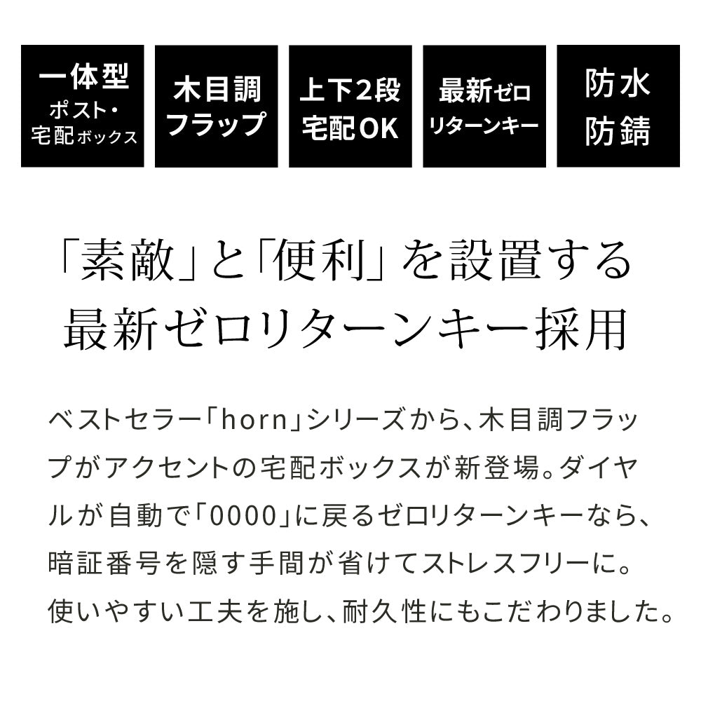 【horn/ホルン】ポスト一体型宅配ボックス ”No.02”は、デザイン性と機能性を兼ね備えた宅配ボックス。