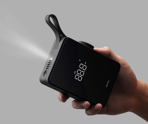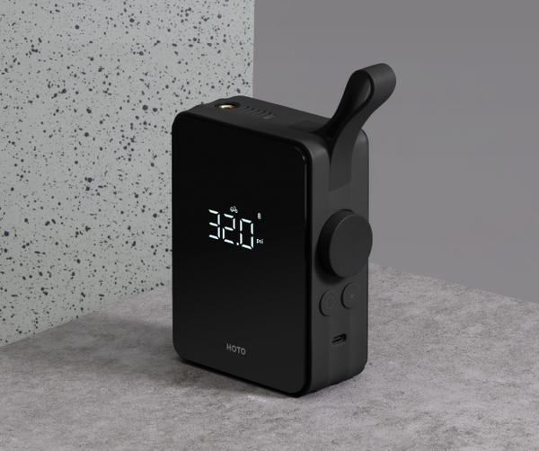HOTOの「エアポンプ HTE0008GL」は、車・自転車・バイク・ボール・カスタムの5つのプリセットモードを搭載した、USB充電式の電動空気入れ。