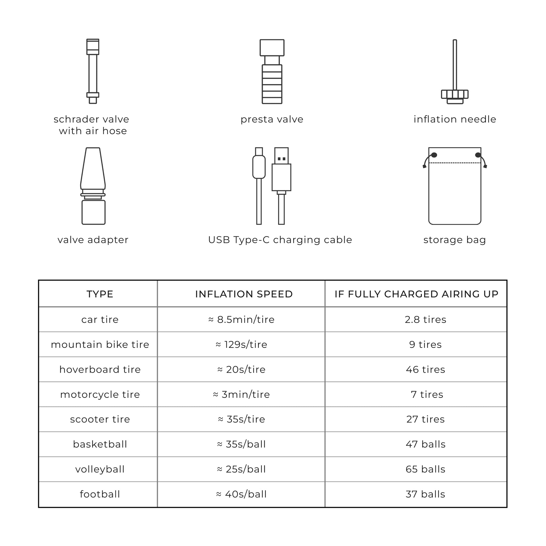 - 対応バルブ:米式/仏式/英式/ボール/浮き輪用アダプター付属