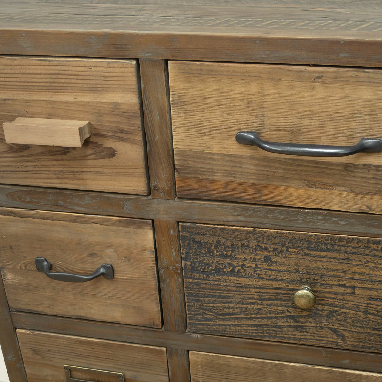 引き出しにはモミ・パイン・エルムなど異なる古材を使用