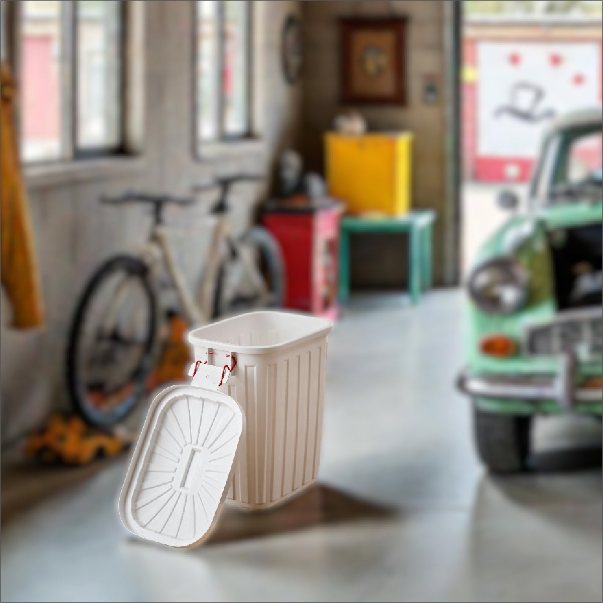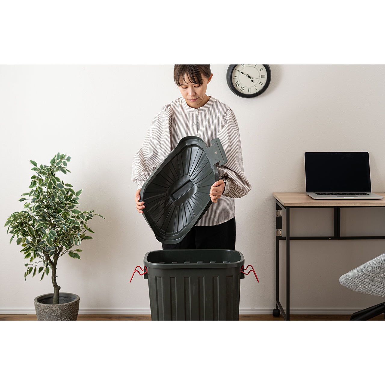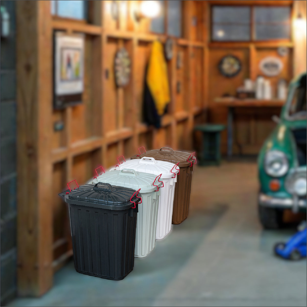 「タフカン60L」は、ガレージや屋外での使用に最適な大容量ゴミ箱。無骨でスタイリッシュなデザインが、愛車のそばや作業スペースにしっくり馴染みます。工具や資材の片付けだけでなく、作業後のゴミをスマートに処理できます。
