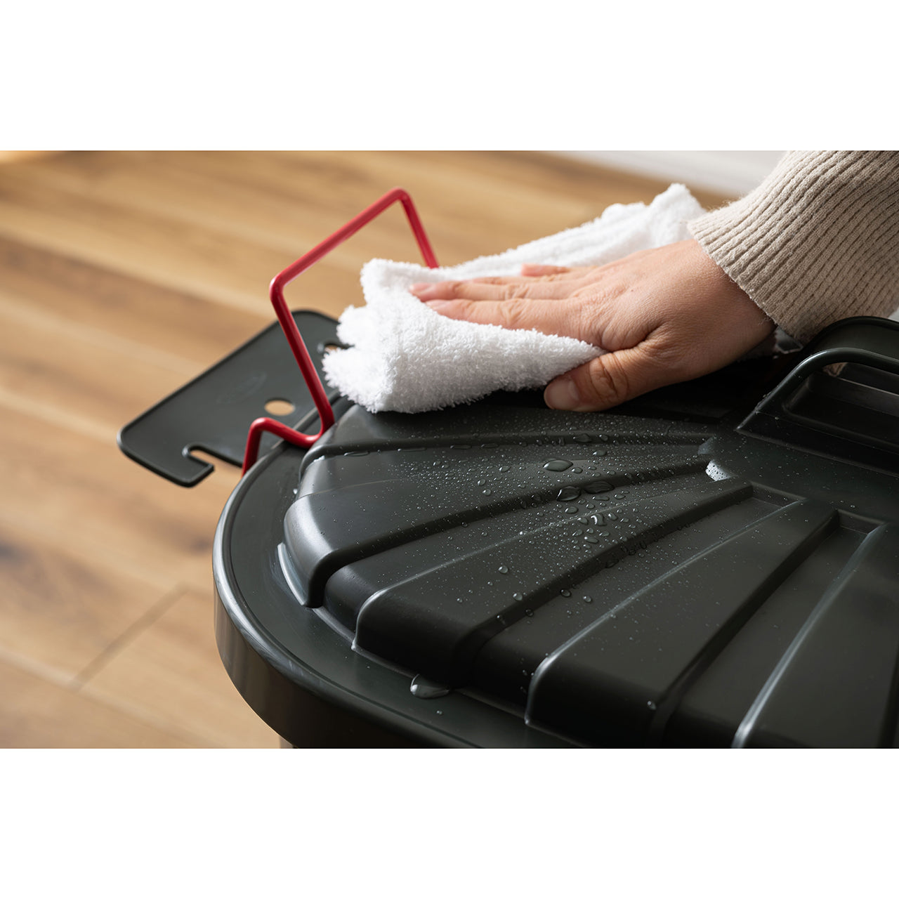 ポリエチレンとスチールを組み合わせた頑丈な構造で、屋外やガレージのハードな環境にも対応。60Lの大容量だから、DIYやメンテナンスで出るゴミも余裕で収納できます。