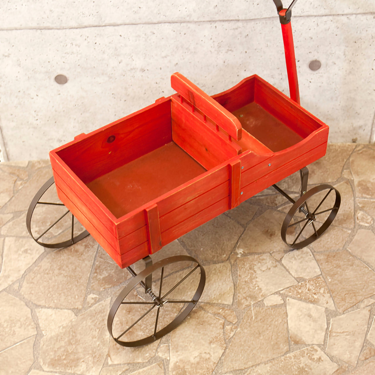 ナチュラルな木の風合いと、レトロなカートデザインが魅力の「ウッデンプランターカート」。