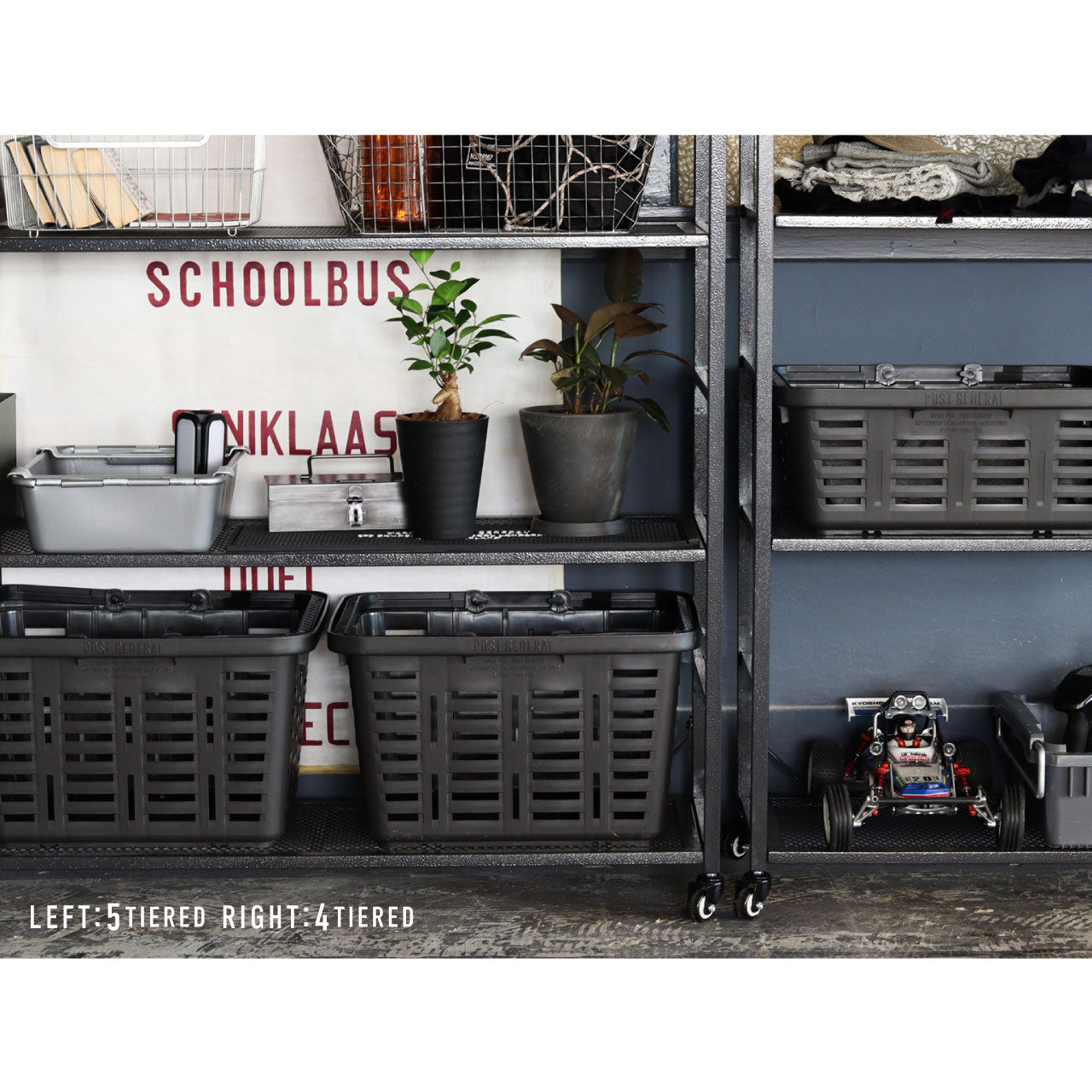 また、POST GENERALのヘビーデューティーバスケットと組み合わせると、日用品や衣類の収納にスペースの無駄なくシェルフを活用いただけます。