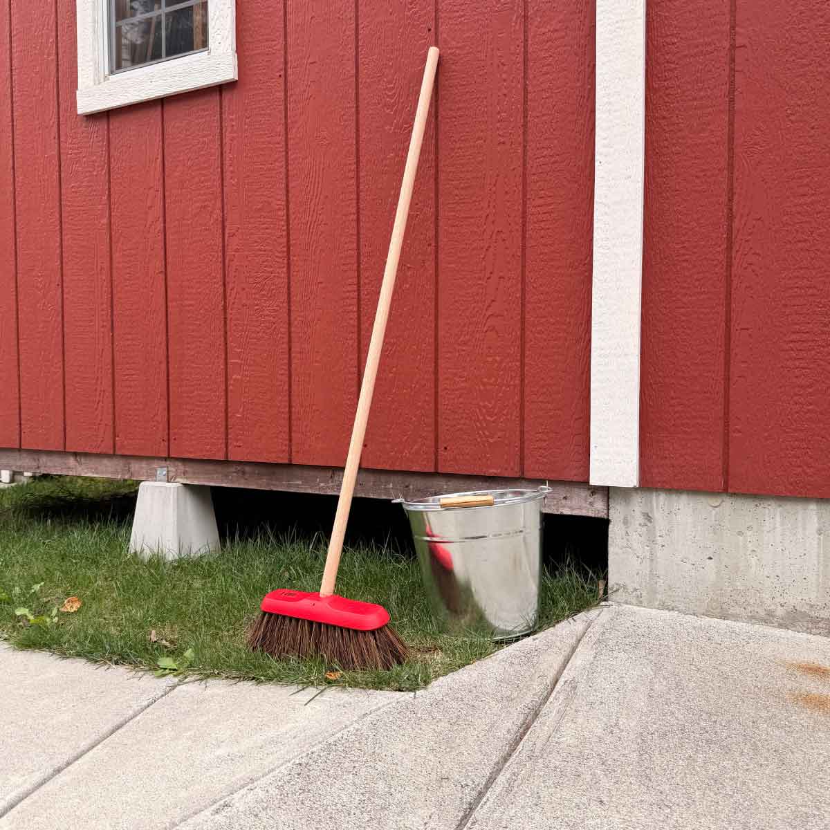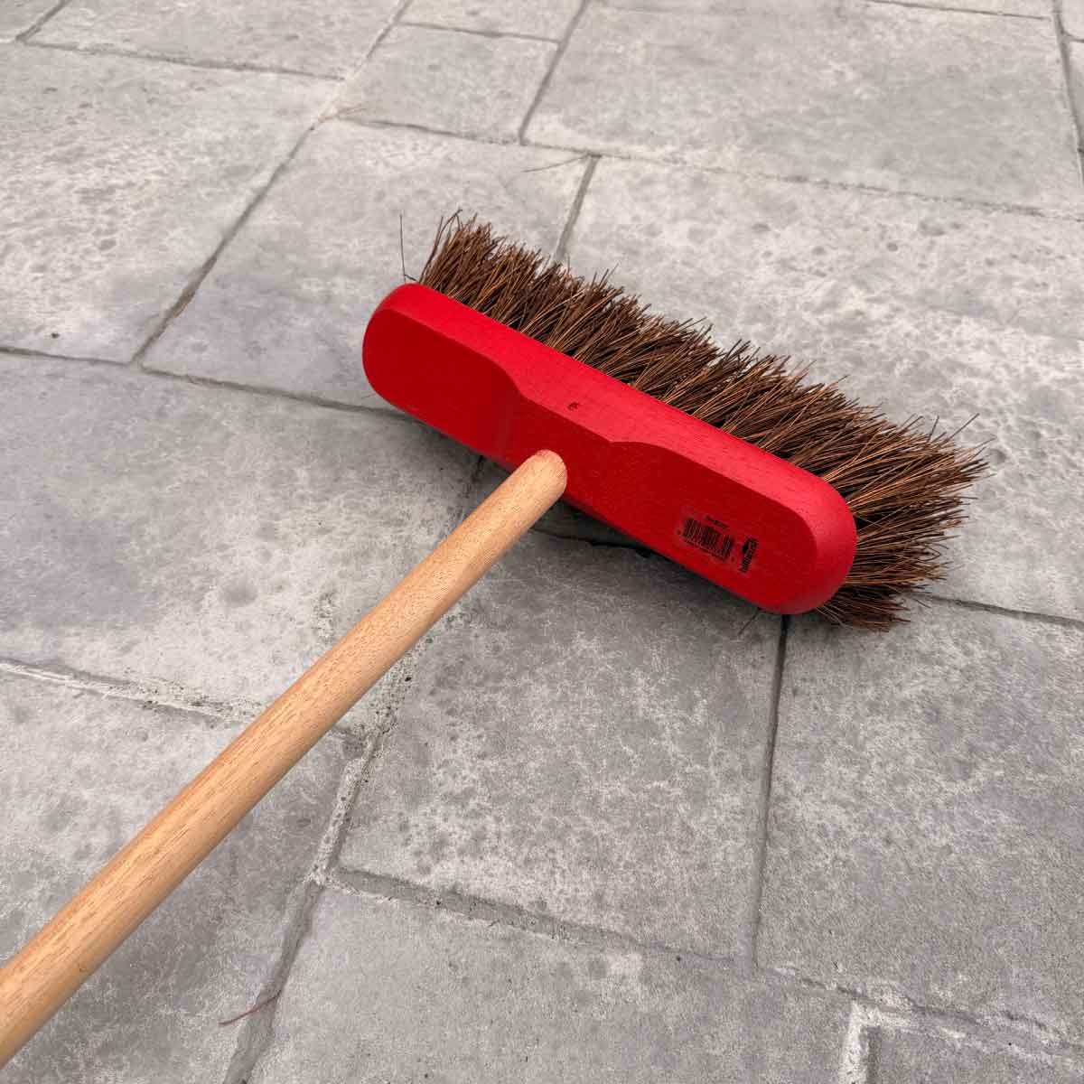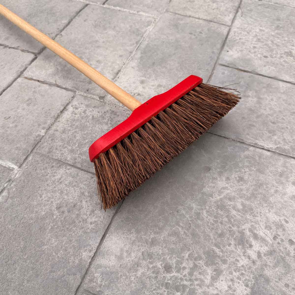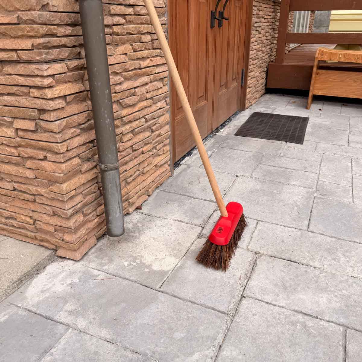 ブラシ部分には硬めのパルミラヤシ繊維を使用し、玄関・ベランダ・ガレージなどの乾いた場所の掃き掃除に最適。