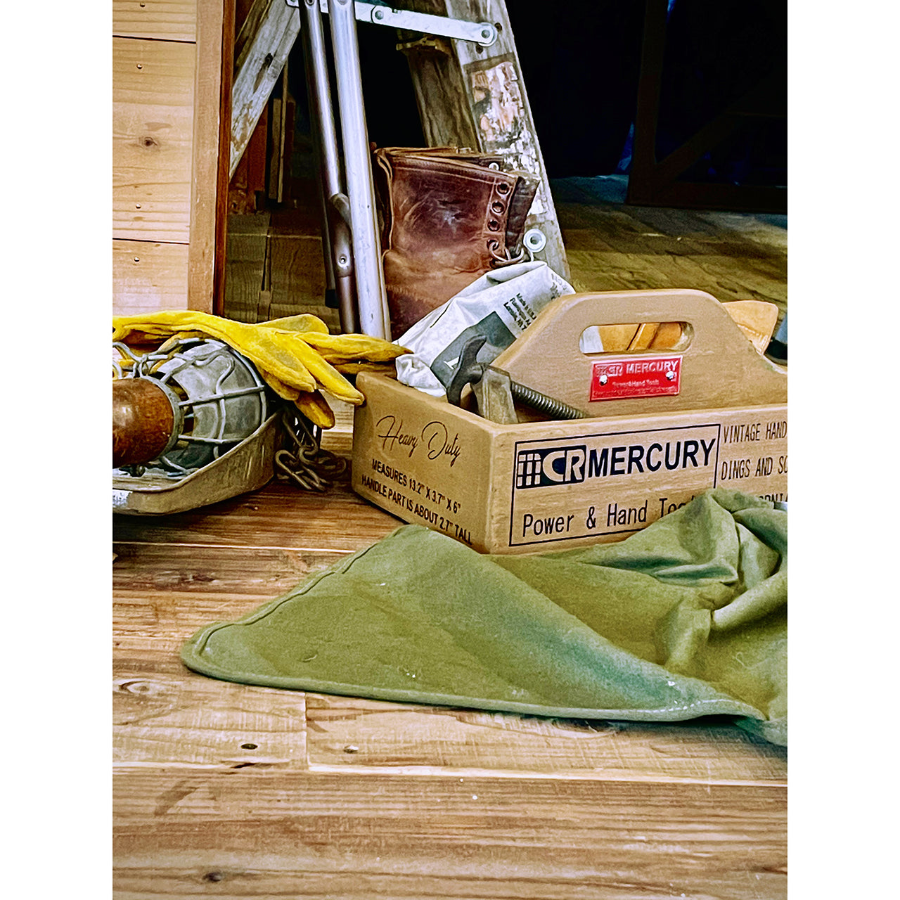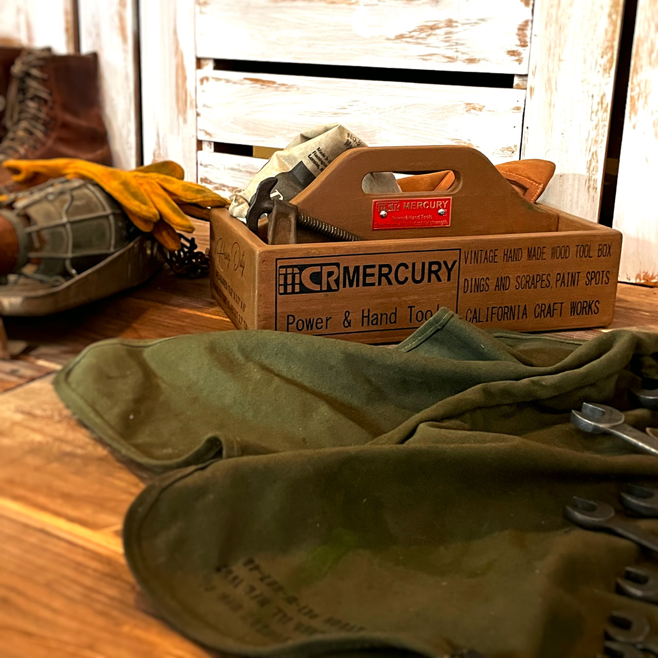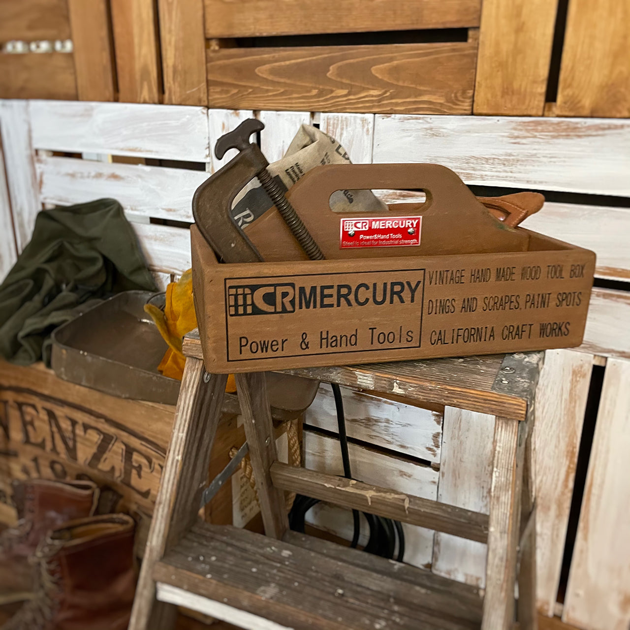工具や小物をおしゃれに収納できる、アメリカンヴィンテージ風の木製ツールボックス。
