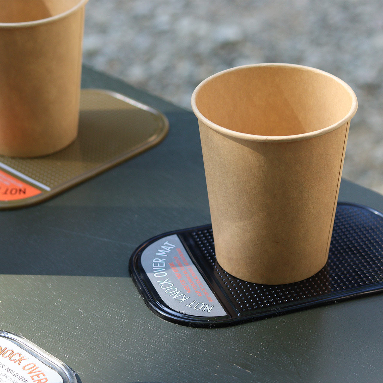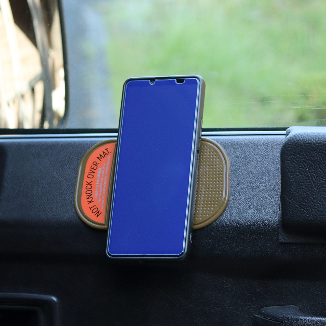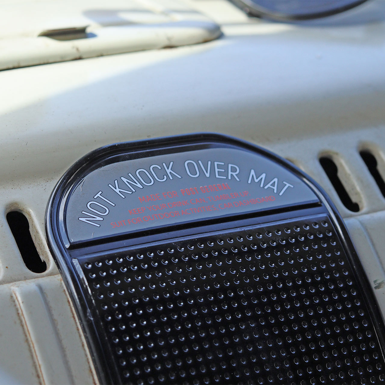 そんなあるあるシーンにお勧めの「NOT KNOCK OVER MAT=倒れないマット」粘着性のあるPUゲル素材は、鉄や樹脂、ガラスなど様々な素材に粘着し、紙コップやビール缶、スマートフォンやサングラスなどを簡単に付けたり外したりすることが可能です。