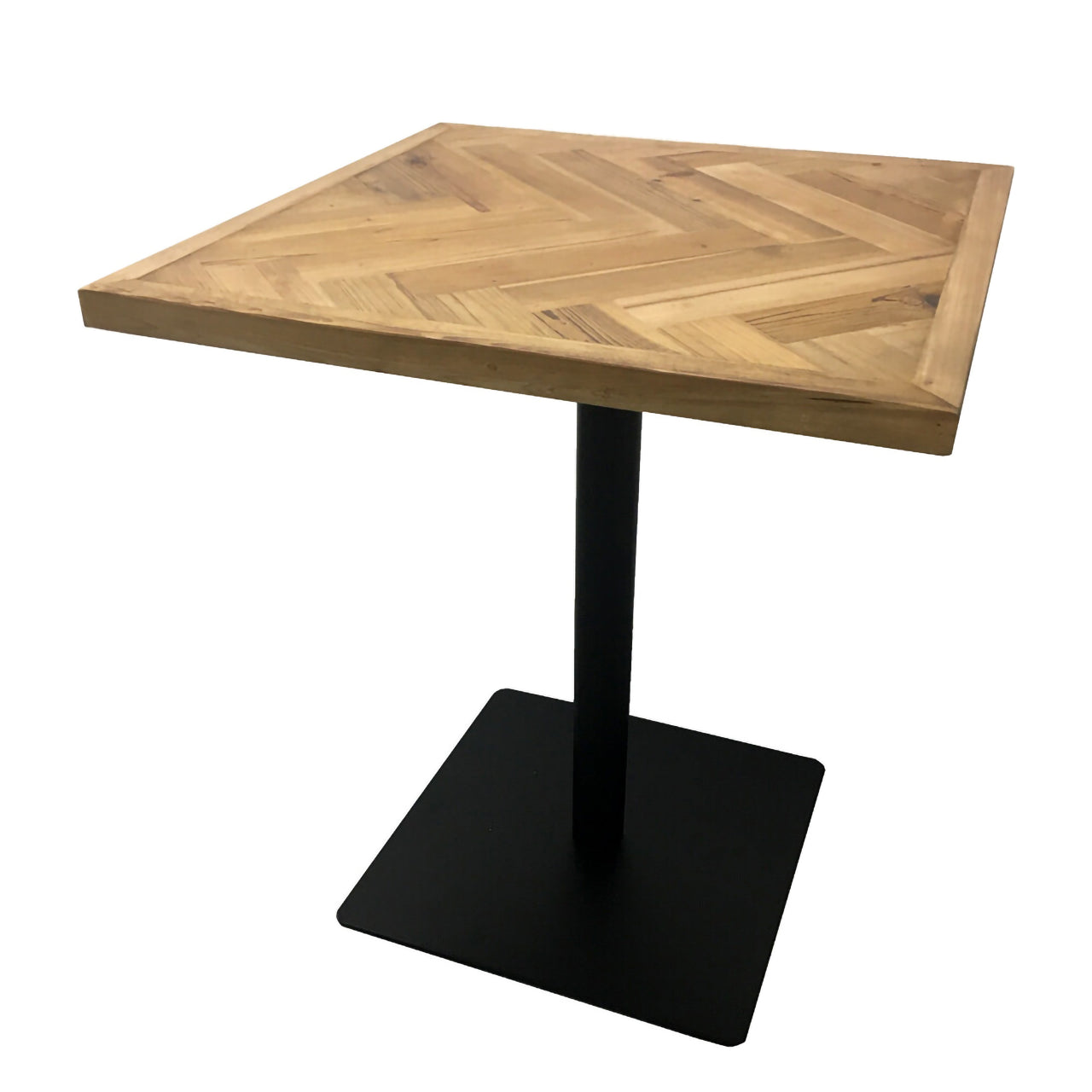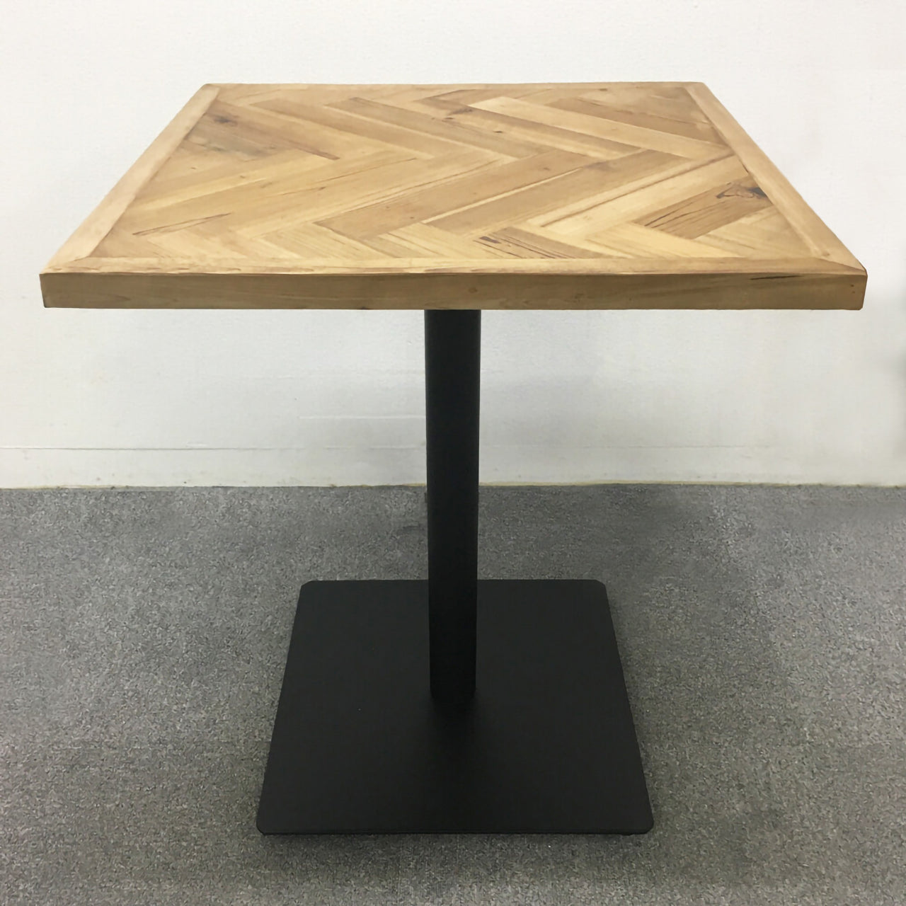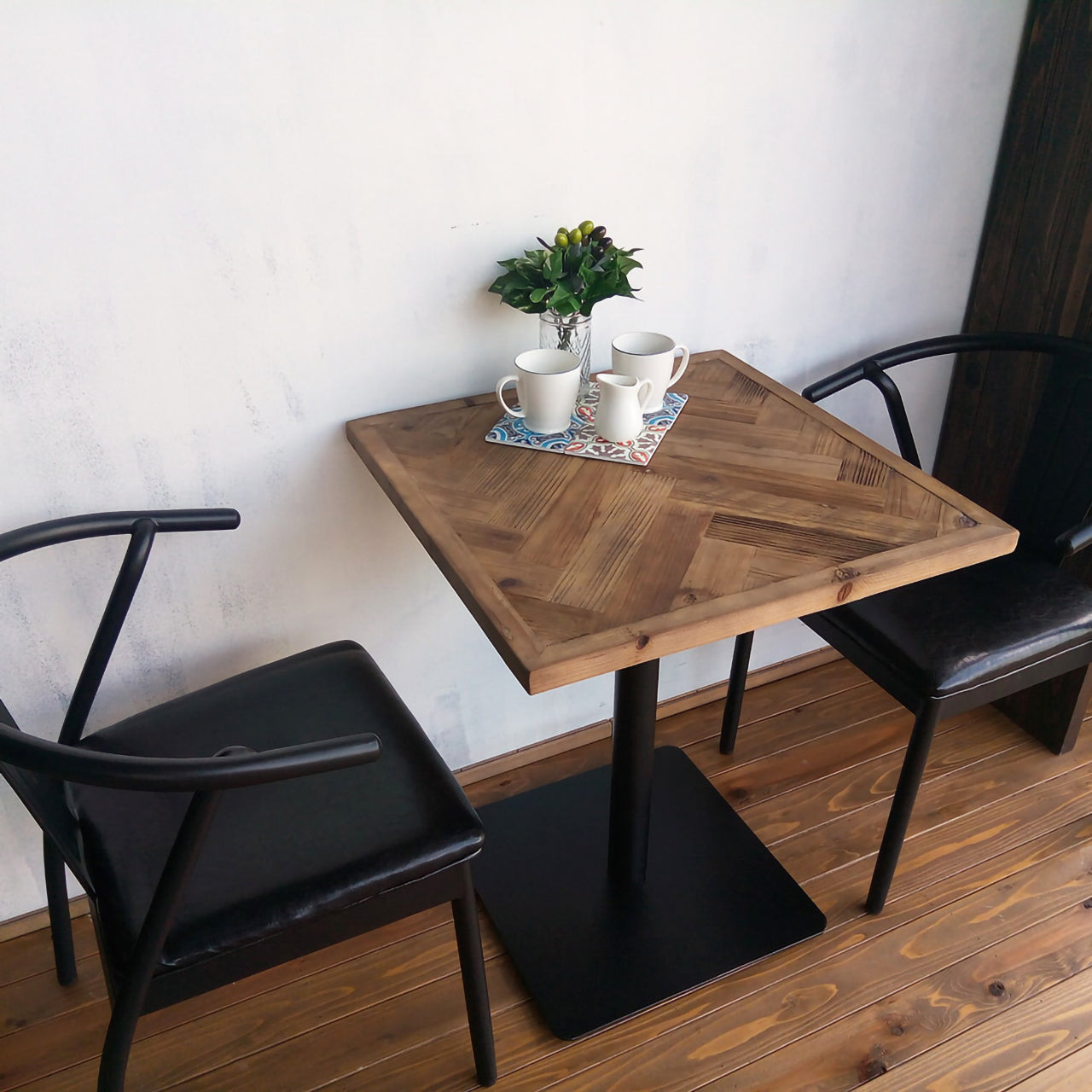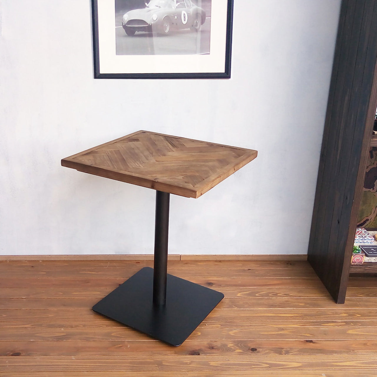 古材の風合いとヘリンボーン柄の美しさが融合した、コンパクトサイズのカフェテーブル。