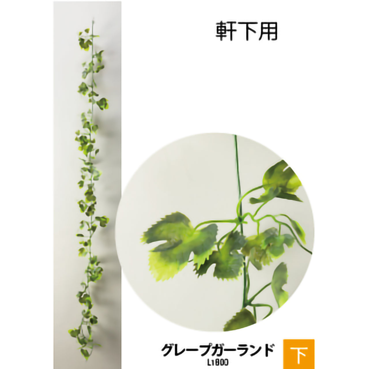 グレープガーランドは、軒下や屋内空間に自然な緑のアクセントを加えることができる人工植物のガーランドです。ぶどうの葉とツルをリアルに再現したデザインは、ナチュラルで温かみのある雰囲気を演出し、空間にやさしい彩りを添えてくれます。