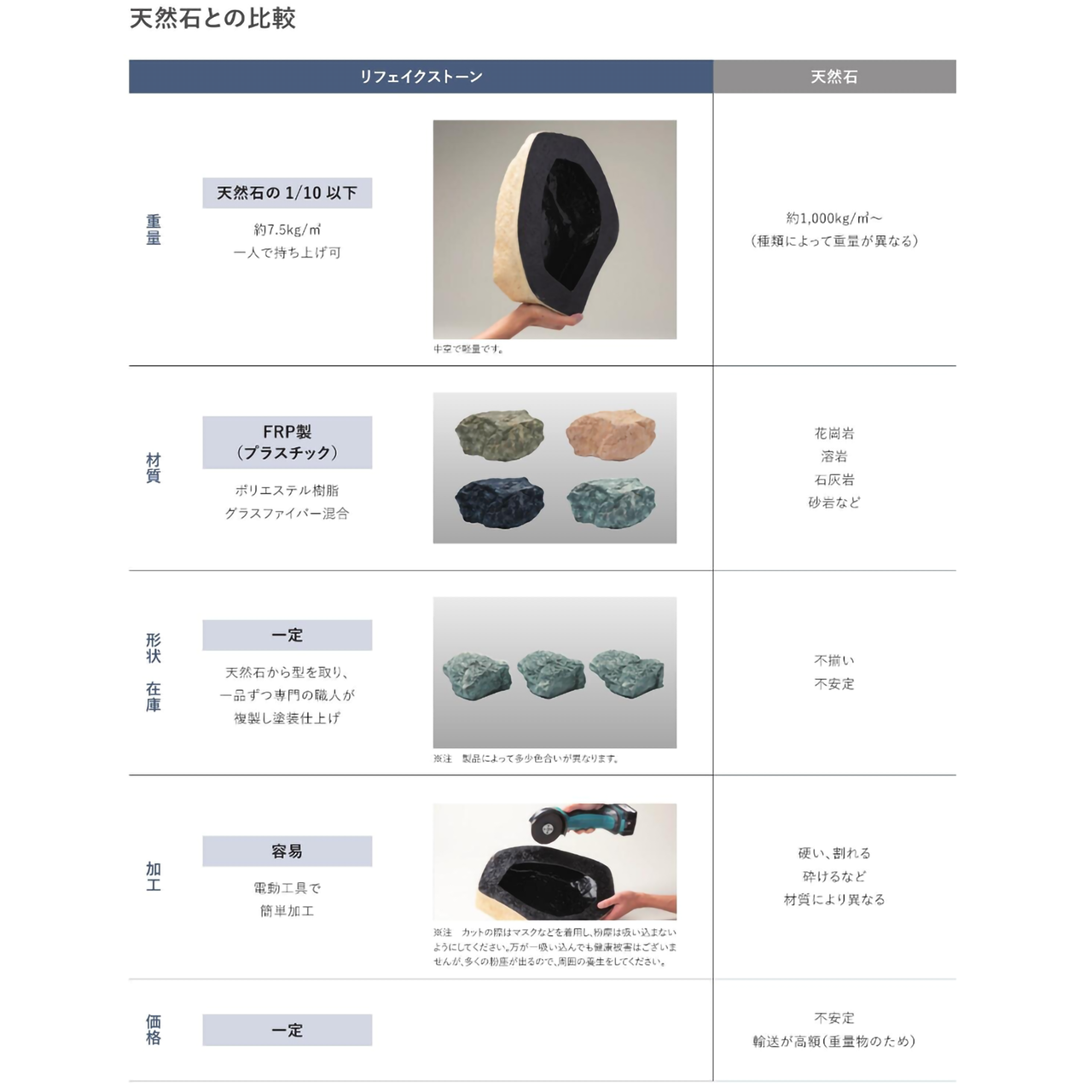 製法:本物の石から型取り、FRP(グラスファイバー混合ポリエステル樹脂)で成形