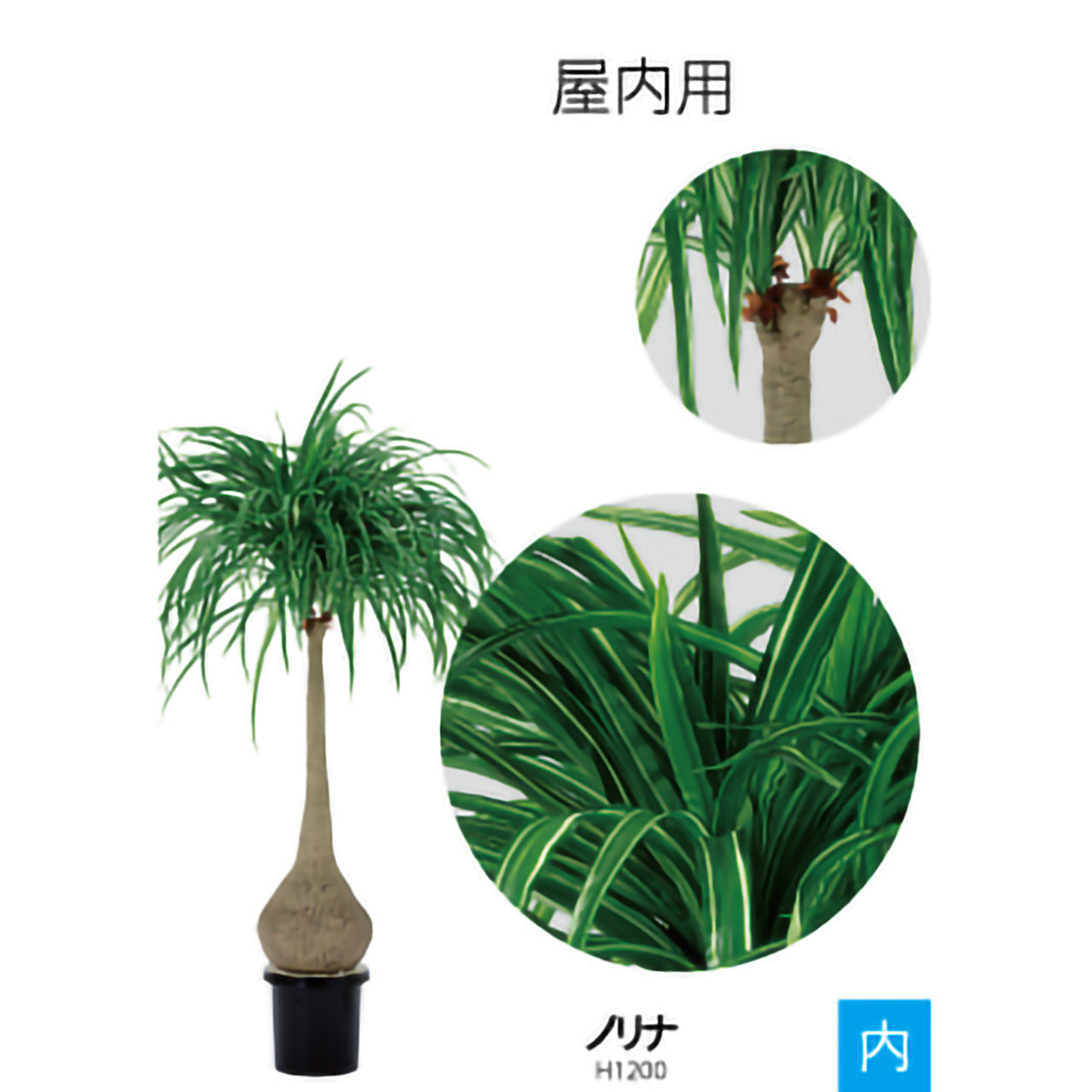 全長約120cmのコンパクトなサイズ感で、住宅のリビングや玄関、店舗のディスプレイ、オフィスのアクセントなど、さまざまな室内空間に自然に馴染みます。ノリナ特有の柔らかな葉の動きや質感が丁寧に再現されており、近くで見ても人工とは思えないほどのリアルさです。