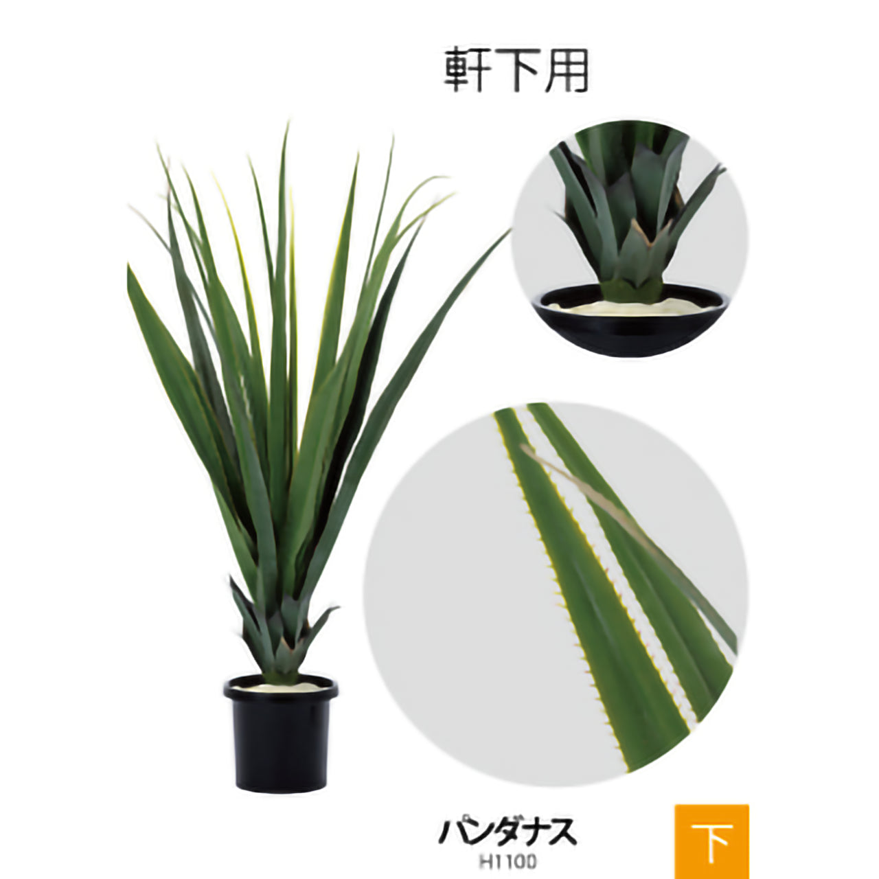 「リフェイクグリーン パンダナス」は、南国の雰囲気を手軽に取り入れられる、軒下・屋内対応の人工樹木(リフェイクグリーン)です。まずご注目いただきたいのは、本物のパンダナスのような力強く広がる葉の形状と、空間にリゾート感を添える存在感です。
