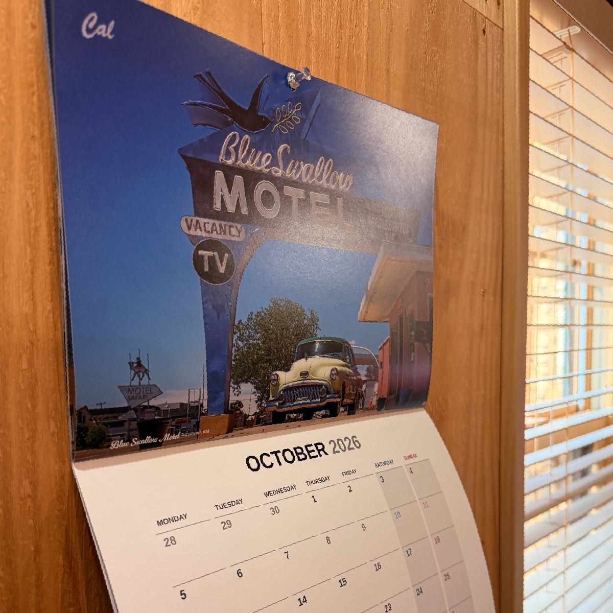 そんな記念すべき年に、雑誌『Cal』編集長・秋元一利氏が現地で撮影した写真を収録した特別なカレンダーが登場。ルート66沿いの看板や風景が、あなたの部屋にアメリカンな空気を届けます。