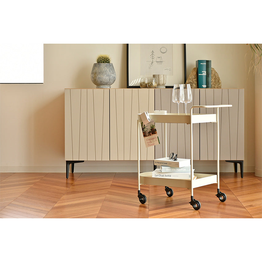 キャスター付きで移動もラクラク。ホームオフィスのサブテーブルやキッチン収納、リビングのサイドワゴンとして、幅広いシーンで活躍します。