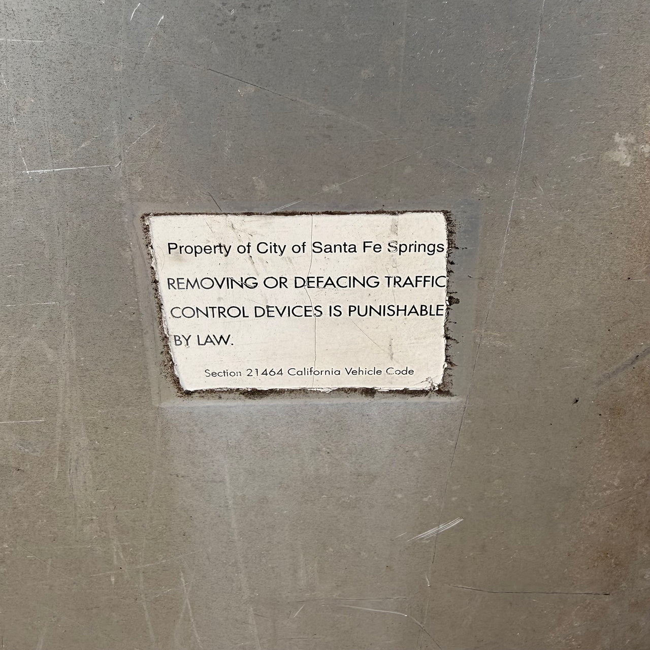 現地で直接買い付けた一点物で、使用感や小傷が歴史を物語る証拠となり、レプリカでは味わえない本物の質感と存在感を楽しめます。さらに裏面にはカリフォルニア州サンタフェスプリング市で使用された注意書きシールが、実際に使用されていた証を物語ります。