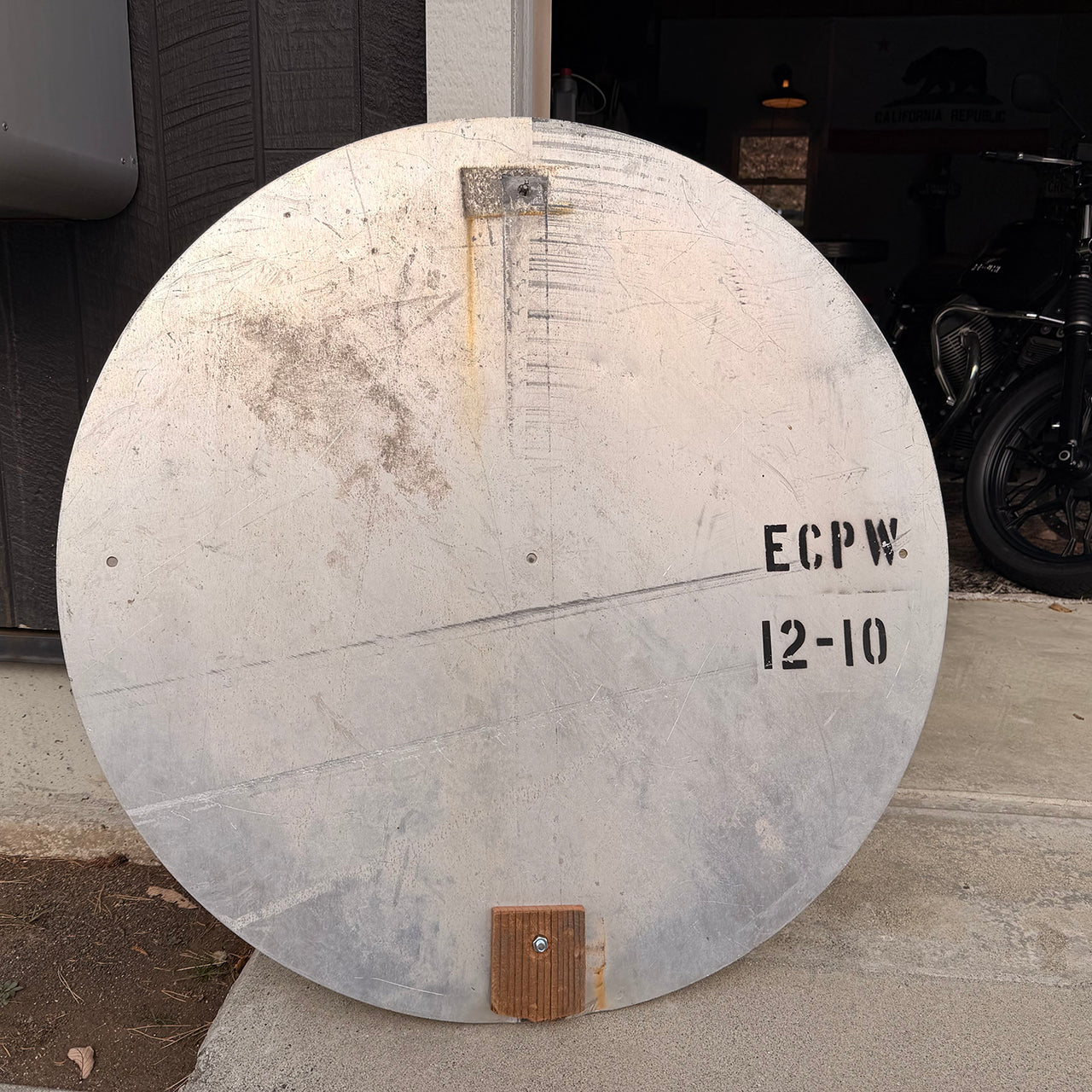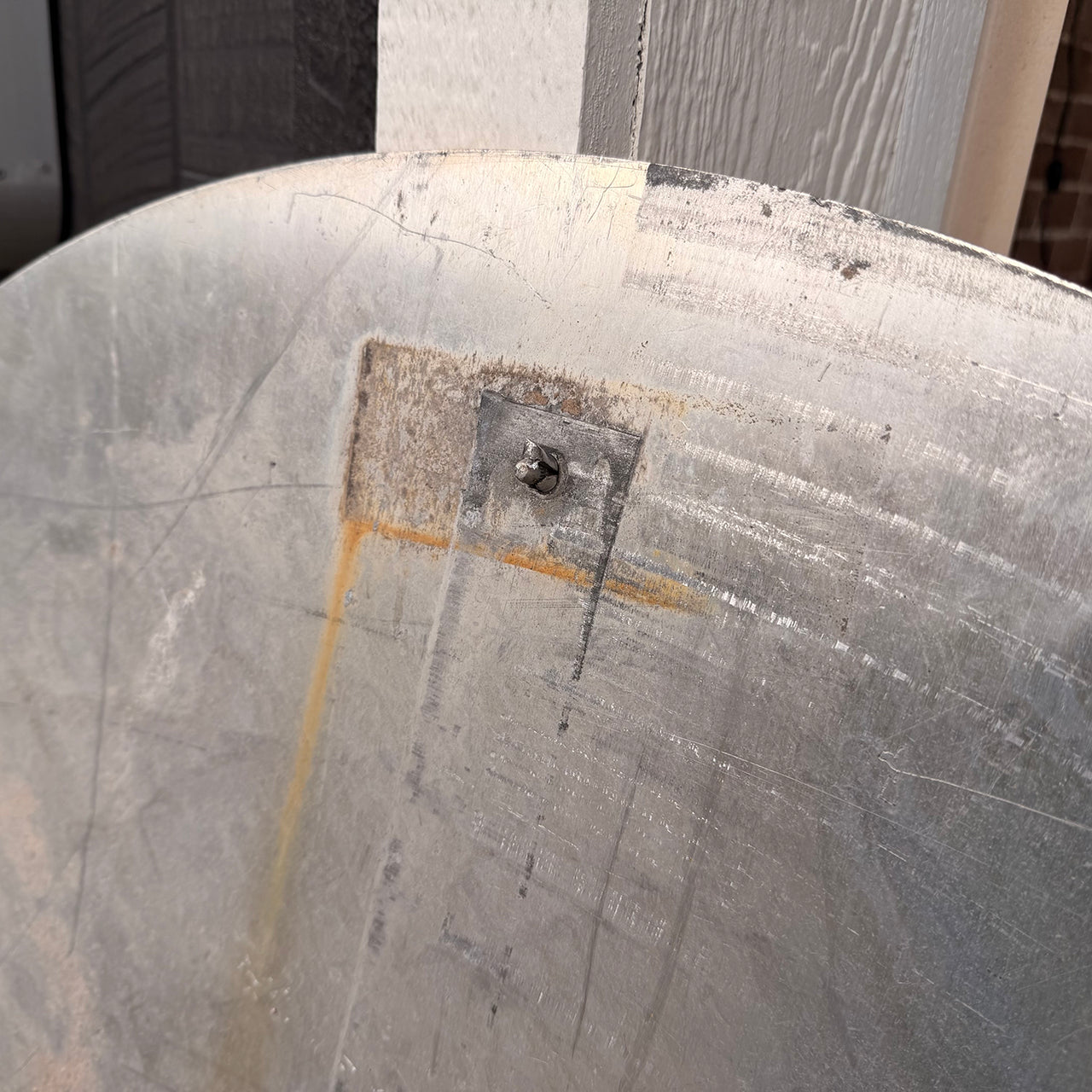 現地で直接買い付けた一点物で、使用感や小傷が歴史を物語る証拠となり、レプリカでは味わえない本物の質感と迫力を楽しめます。さらに、四方と中央にビス穴があり、下部には裂けと歪みが見られ、木材で補強されています(補強時期は不明)。