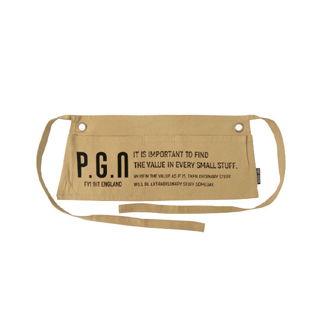 ビンテージの企業広告エプロンをモチーフにした前掛け型のワークエプロン。