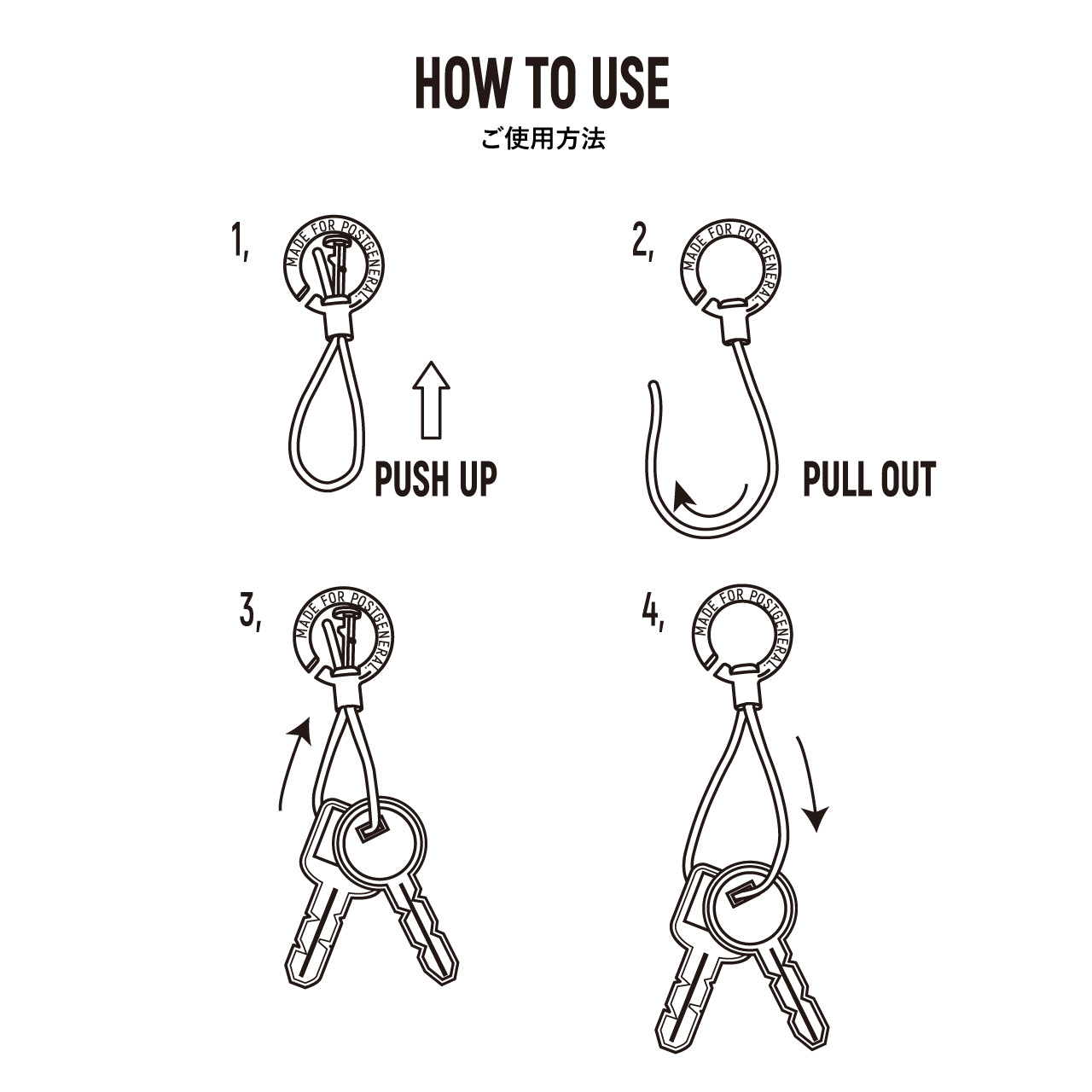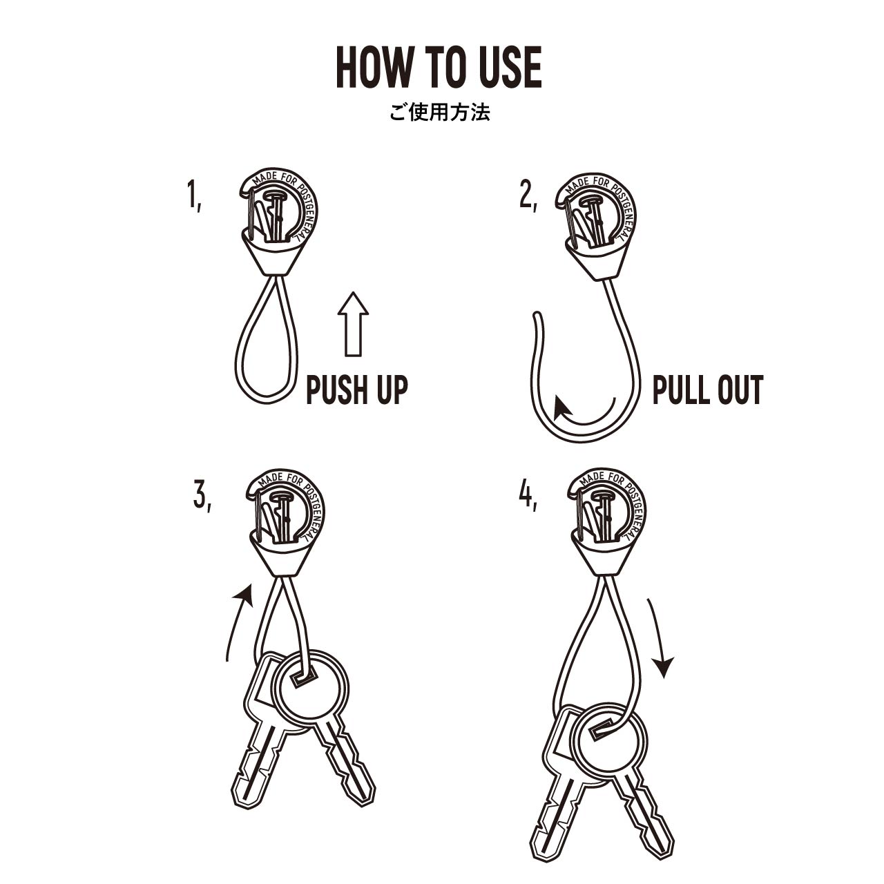 (PVCロープを押し上げずらし、片方を引き抜き出し、鍵を付けられます。)